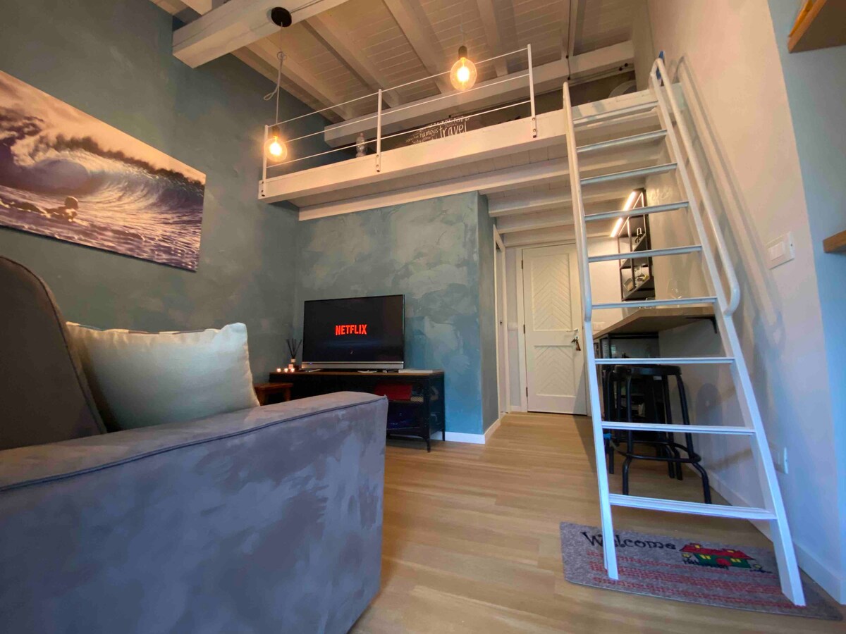 Base di appoggio per poter vivere a pieno tutto ciò che offre il territorio. Sito in un Residence privato all’interno di un parco di ulivi e castagni, con accesso privato al lago. Monolocale di 20 mq, ristrutturato in stile moderno nel 2022, Wi-Fi gratuito connessione debole, parcheggio privato, soppalco con letto matrimoniale raggiungibile con scala a pioli, bagno con doccia, salotto con tavolo richiudibile e Smart tv, piccola cucina attrezzata. Balcone esterno vista lago, tavolo e sedie