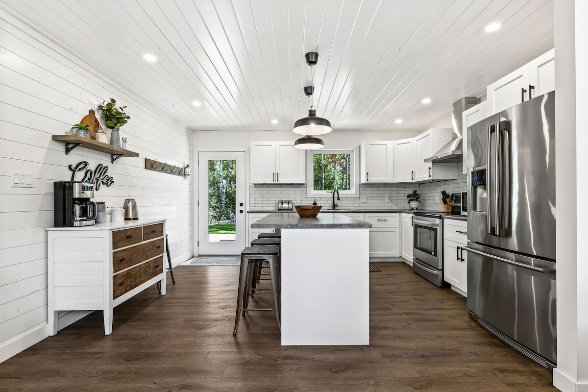 Ole esimene, kes naudib seda uhiuut hoonet, mis on saadaval juunis. Hoiame teid fotodega kursis, kui hoone jätkub See uhiuus maamaja pakub: -1304 ruutjalga eluruumi -3 magamistuba/4 voodit (narivoodi) - Luksuslik vannituba - Kvartsist lauaplaatidega täisvarustusega köök -Uued seadmete pliit, nõudepesumasin, Külmik -75-tolline nutiteler - Elektrikamin - Tekk koos toiduvalmistamisruumiga - 16-tolline kõrge lagi männiga - Kardie-laua välisilme - vann - Fire pit -Beach -volleyballiväljak