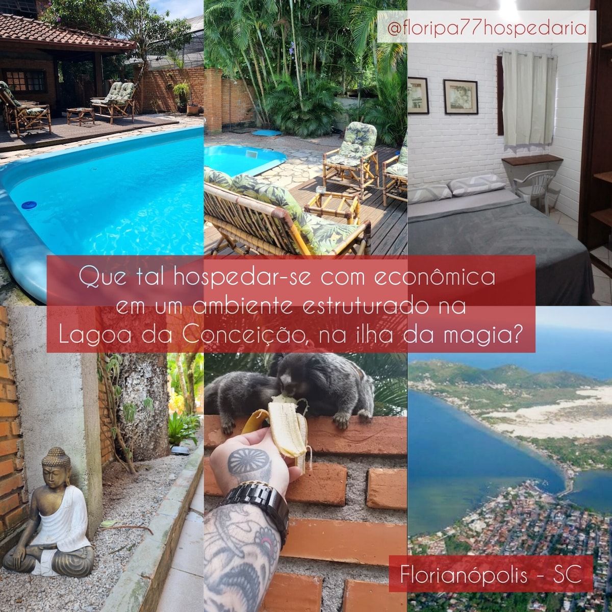 Aproveite sua sacada privativa com mesa e cadeiras para contemplar a beleza da baía de Pântano do Sul. A suíte conta com: - Banheiro privativo - Ar-condicionado - Frigobar - TV - Wifi.