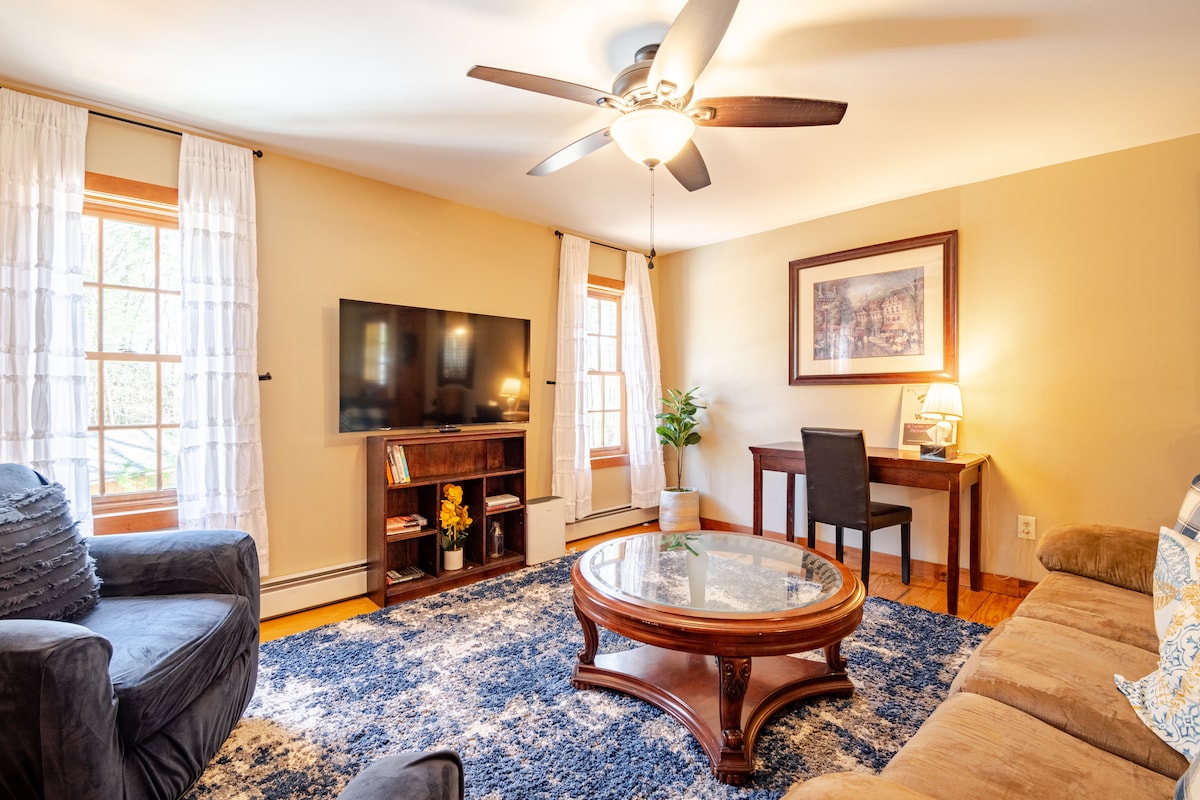 Luksuslik ja päikesepaisteline sviit privaatse vannitoaga, eraldi sissepääsuga, teler/elutuba, lugemisnurk, laud/tööala ja kohvibaar. 6 kvartalit linna ja kaunid vaated Skinner Mt. Ühe Northamptoni kõige tunnustatud mööbliga kaunistatud käsitsi valmistatud puitmööbliga. Privaatne terrass, suur tagahoov koos oma magamiskohtade ja mustikatega. Sviidis on privaatne parkimiskoht ning see asub mugavalt jalgrattatee ja marsruudi 91 lähedal. Lõõgastu ja avasta Northamptoni.