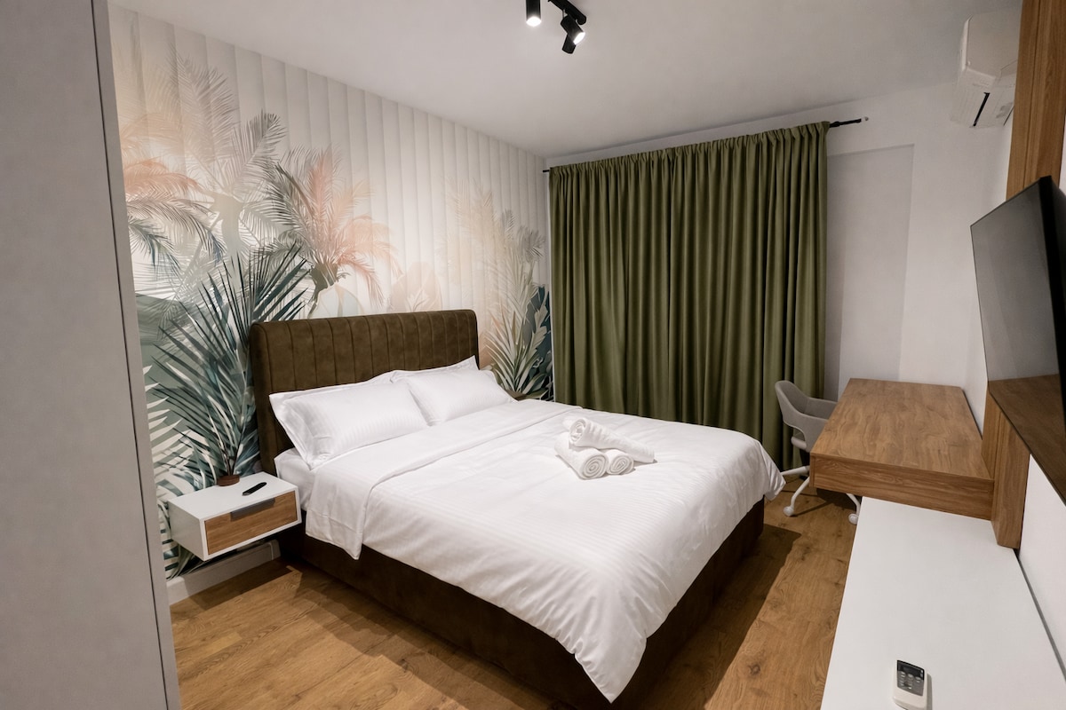 Modernne ja valgusküllane stuudiokorter Cortina Northi kompleksis, mis asub Bukaresti põhjaosas. Seal on king-suuruses voodi, Netflixi ja kiire WiFi-ga nutiteler, söögiala ja varustatud köök. Stiilne disain, kaasaegne vannituba ja paindlik saabumine. Băneasa, Pipera ja lennujaama lähedal, uues ja turvalises kompleksis. Ideaalne paaridele, äri- või linnapuhkuseks. Cortina Wellnessi saab kasutada päevatasu eest.