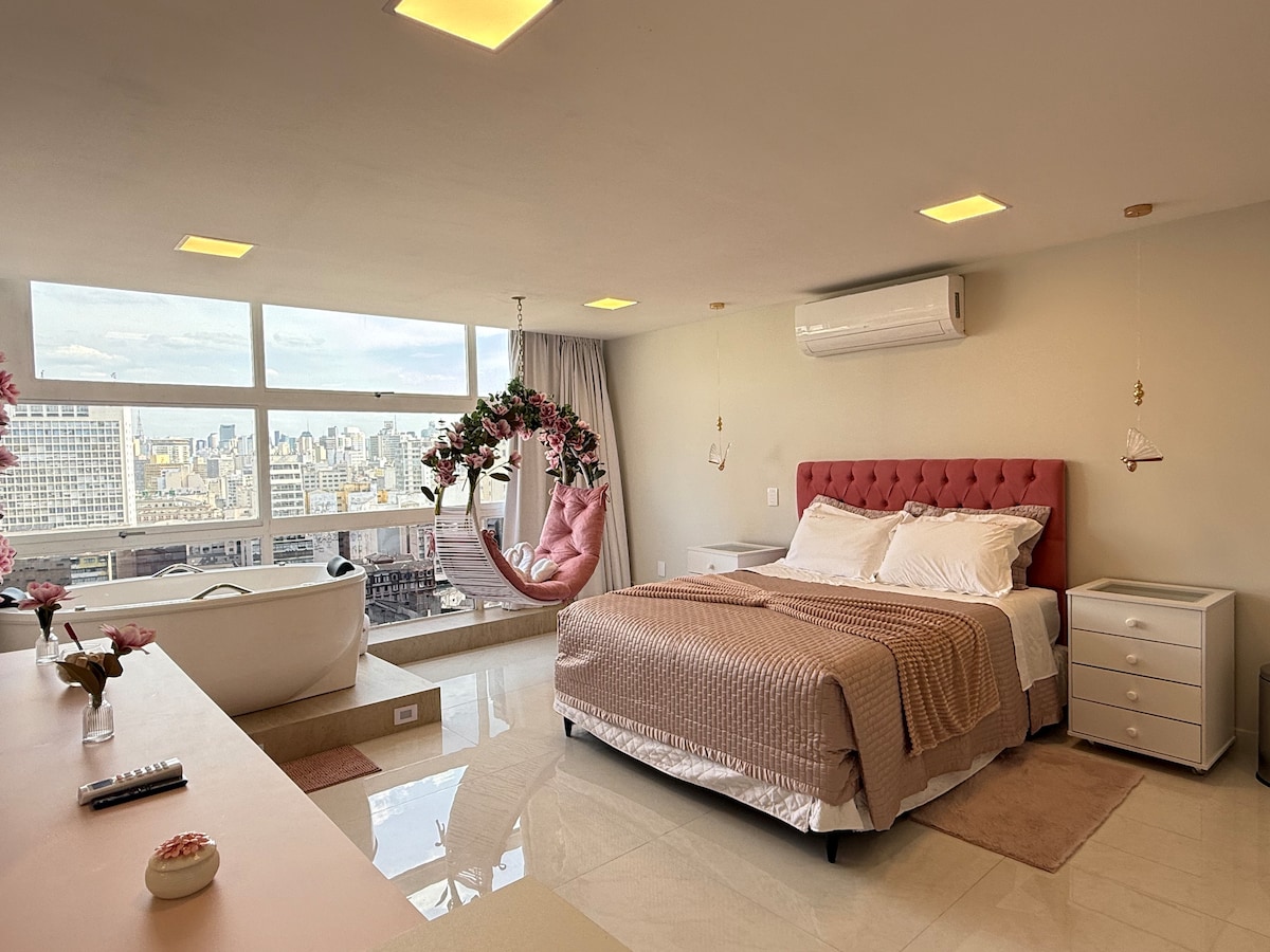 Estúdio espaçoso com muito design, arquitetura e a melhor vista de São Paulo. Loft completo! Com cama queen, closet, ar condicionado silencioso, cozinha completa, home office, WI-FI, TV 55” e uma belíssima banheira de imersão, de onde pode apreciar o seu drink preferido e curtir uma vista apaixonante. São Paulo toda estará há poucos minutos de você. Acesse o metrô andando apenas 200m. Reserve com tranquilidade! Proporcionaremos uma excelente hospedagem e uma ótima experiência!