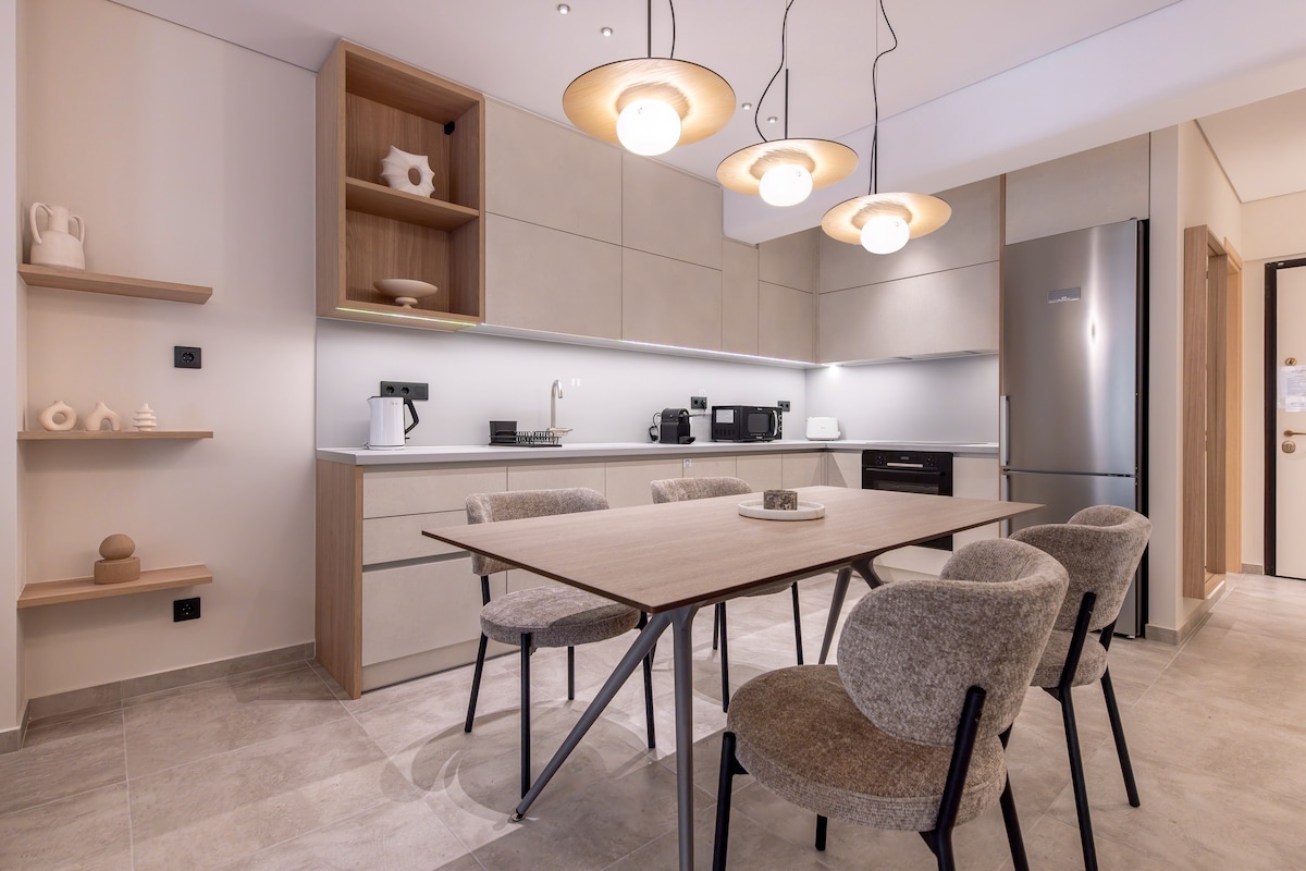 Elegant, modern apartment in Monastiraki, Athens' most central neighborhood. Located merely 300 meters from the Monastiraki subway station, our space offers brand-new hotel design with luxurious finishes. Ideal for a comfortable and memorable stay for a few days, weeks or even months, it beckons you to experience a stylish immersion into the very heart of Athens. Breathing new life into a mid-century textile manufacture, our building’s façade and overall architecture serves as a constant visual