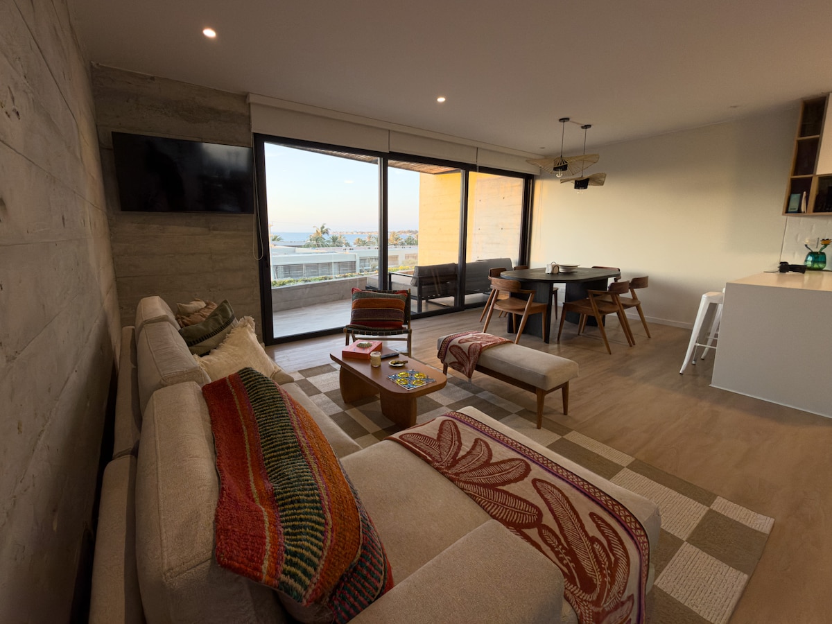 Relax with family and friends at this cozy and fully-equipped apartment. This newly built apartment is a great option for exploring all that Paracas has to offer, and is perfect for either remote work or vacation. The apartment is well located in the beautiful and modern Condominio Navigare Paracas, just a 5min walk to the Kite Surf Point and 1km from the Paracas National Reserve. The condominium includes a private pool, gym, and co-working space.