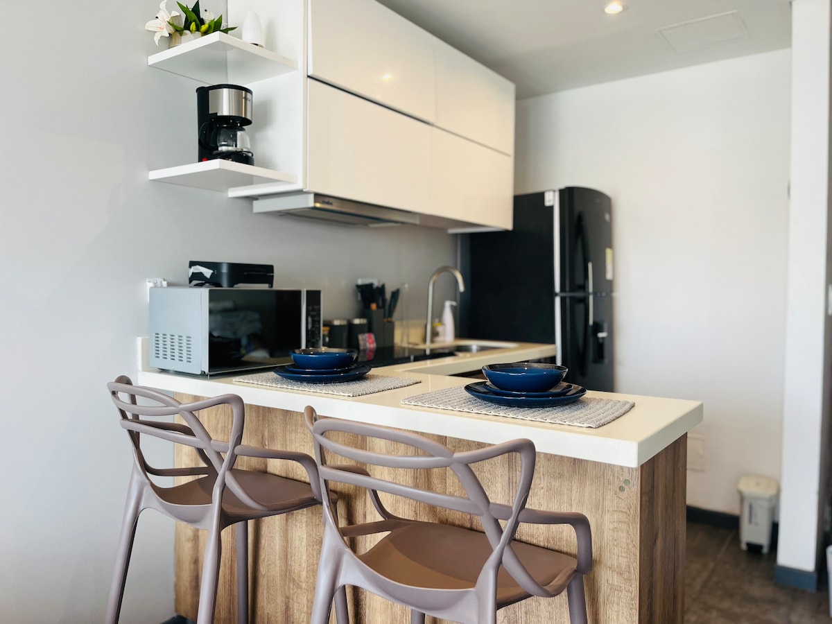 Kaasaegne korter kaasaegse arhitektuuriga. Sellel on väike päikesekatusega terrass, kapp, kaheinimesevoodiga stuudio ja kaks täielikku vannituba. Turvaline vaikne ala parkide, kaubanduskeskuste, restoranide jms lähedal. Parqueadero päevasel ajal võib seal olla, sa ei pruugi olla. Hoone sissepääsu juures asuv parkla, käru väljas, sissepääsust 3 meetri kaugusel.