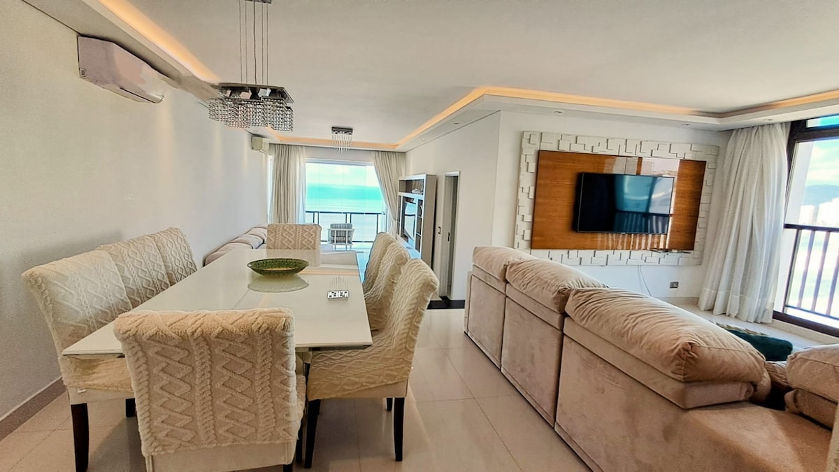 🏖️ Seu paraíso na Praia de Pitangueiras! Nosso apê de 3 quartos tem vistas de tirar o fôlego. Curta a sacada panorâmica fechada de vidro, perfeita para aquele drink 🍹 ou cervejinha 🍺 no final do dia. Com uma decoração estilosa, ventiladores e ar condicionado nos quartos, você vai se sentir em casa 🏠 e na praia 🌴 ao mesmo tempo. Cozinha equipada, Wi-Fi, Smart TV e estacionamento garantido. A poucos passos da areia e dos hotspots do Guarujá. Bora viver o melhor da praia! 🌅