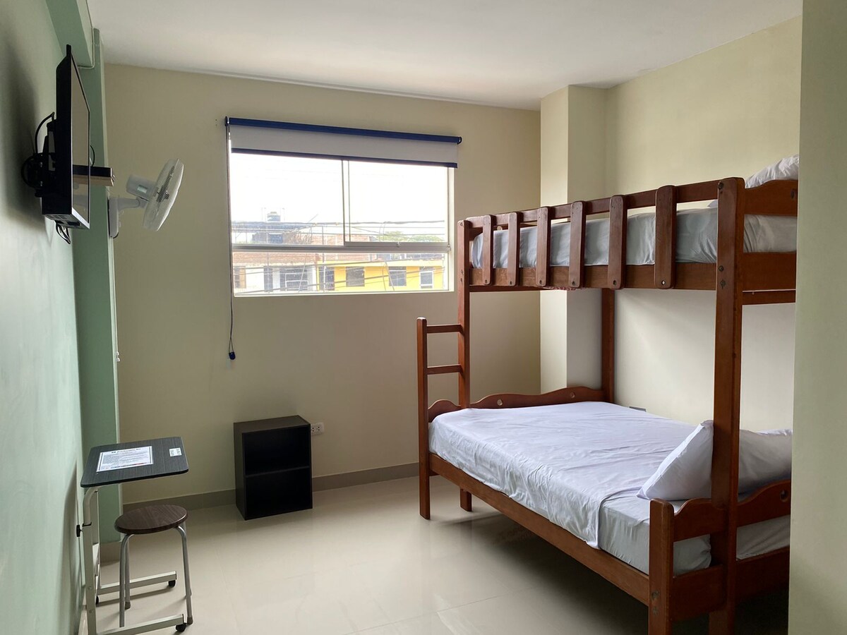 Privilegiada asukoht kesklinna ja lennujaama vahel, tuba kõige vajalikuga, kliimaseade, nutika telerikaabel, termaga dušš ja hea wifi. Meil on ühiskasutatavad ruumid, nagu vapustav terrass, kus saab hinnata ilusaid piurano päikeseloojanguid.