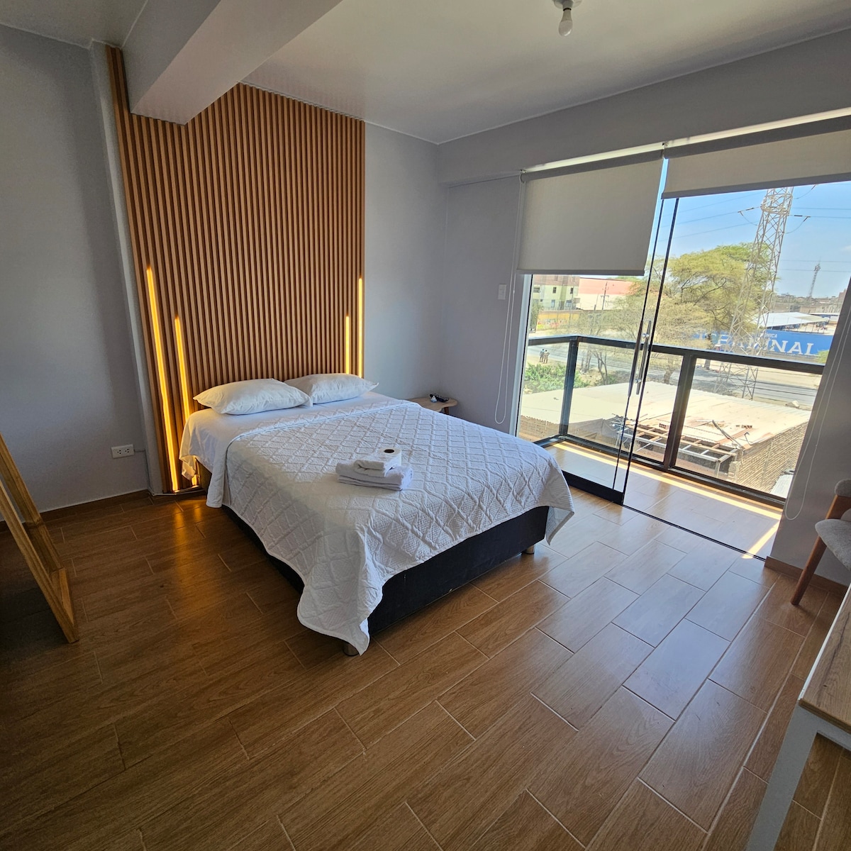 Elegante Habitación Estilo Hotelero en el Corazón de Piura Disfruta de una habitación de lujo con decoración elegante, a solo 2 cuadras del centro histórico y 7 minutos del aeropuerto . Perfecta para quienes buscan confort, privacidad y ubicación inmejorable. Incluye baño privado, TV con cable, Wi-Fi rápido y acceso independiente. ¡Tu experiencia en Piura comienza aquí!