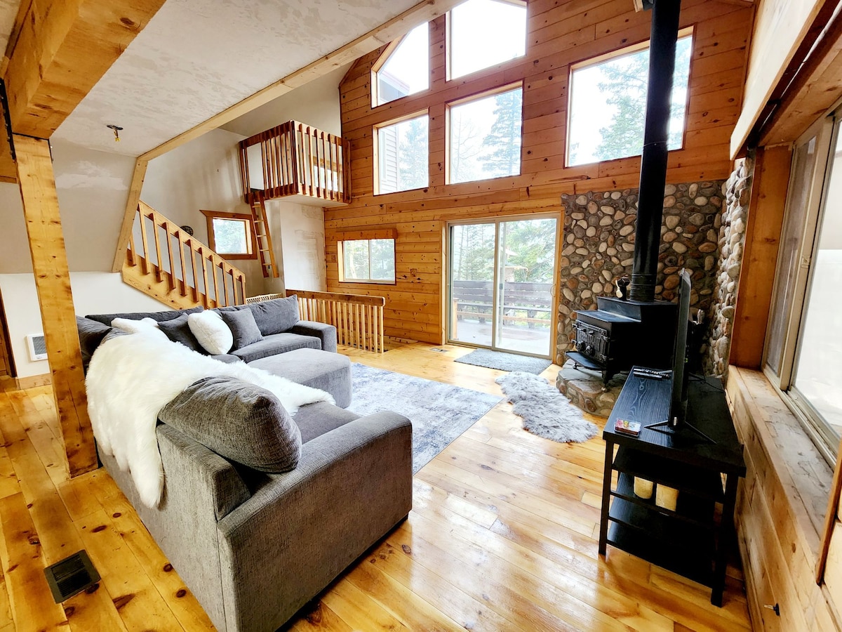 Elevate your living at our amazing mountain home, King master suite with bathroom and coffe bar, including all the needed amenities making for a cozy home away from home vacation stay. You will experience a family ready kitchen for prerparing meals. Easy access directions, accessible year round. Sit in this intimate wood lined cabin by a warm fire and view the ski runs across the street, or jump into the hot jacuzzi under the magnificent starlit skies. All this and more, nestled among the pines.
