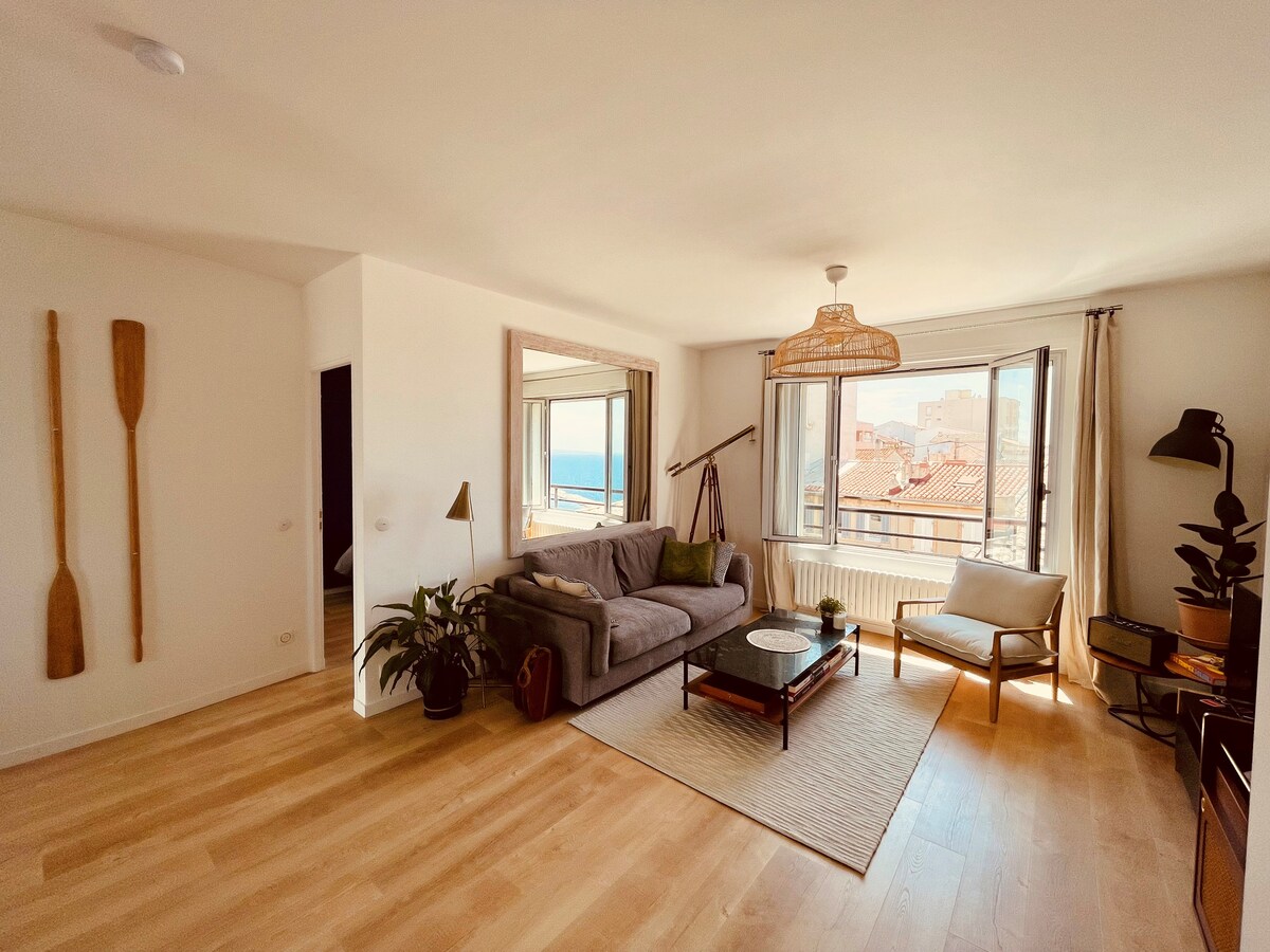 Valgusküllane korter panoraamvaatega merele igast toast. Naudid hingematvaid päikeseloojanguid selle suurelt terrassilt, lõõgastu hamacis ja naudi vaadet! Asud mugavalt Marseille 'i ühe parima naabruskonna Endoume' i südames ja oled merest vaid 2-minutilise jalutuskäigu kaugusel! Õhukonditsioneer + kiire ja usaldusväärne wifi.