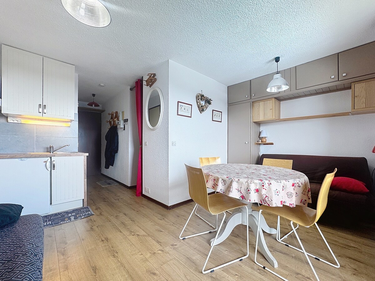 Stuudio 19 m2, täielikult renoveeritud 2024. aastal 4. korrusel koos liftiga, Domaine du Grand Massifi nõlvade jalamil Samoënsis 1600. Saad nautida suve- ja talisporditegevusi koos suusatamise, matkamise, mägirattasõidu, langevarjuga sõitmise, parvetamise ja palju muuga...