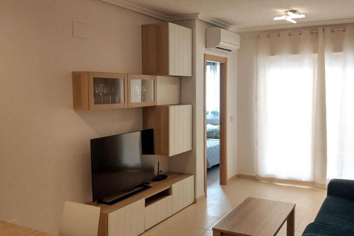 Naudi stiilset puhkust ja parimat mugavust. Oled teretulnud valima meie kaasaegse, renoveeritud ja kujundatud nautimiseks: Kanalite kliimaseade, kvaliteetsed madratsid ja QueenSize-voodid, 180 x 200 (üheinimesevoodid on sobimatud) Mugav diivanvoodi (140x198) ja köök, mis on varustatud kõige vajalikuga. Täielik vannituba hügieenilise dušiga. Sisaldab WiFi-ühendust, SmartTV-d, suurt terrassi ja maa-alust garaaži. Kogukonna bassein ja rand - ainult 350 meetri kaugusel!