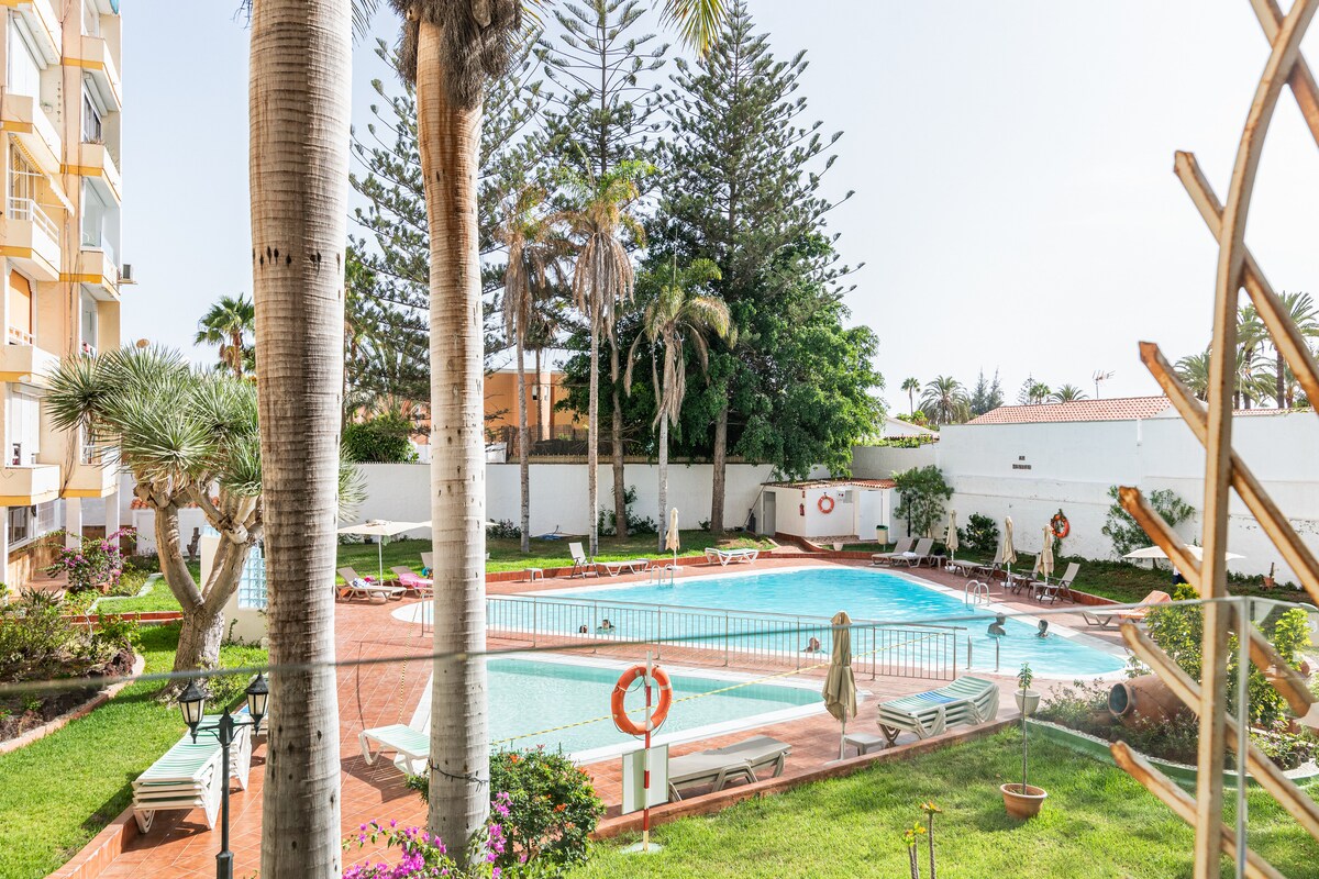 Lühikese jalutuskäigu kaugusel rannast, renoveeritud korter, valgusküllane ja täielikult varustatud. Hea orientatsiooniga majutuskoht on ruumikas, jahe ja mugav pikaajaliseks peatumiseks. Seal on terrass vaatega basseinile, kaks 1 x 2 m hotellivoodit, diivanvoodi, köök ahju ja mikrolaineahjuga, WiFi ja kaks Smart TV-d. Kompleks basseini, aia ja parkimisega, lähedal Kasbah, Yumbo ja Águila Roja kaubanduskeskustele, supermarketitele ning hea bussi- ja taksühendusega. Ideaalne mere ääres jalutamiseks, ujumiseks, päevitamiseks ja saare avastamiseks.