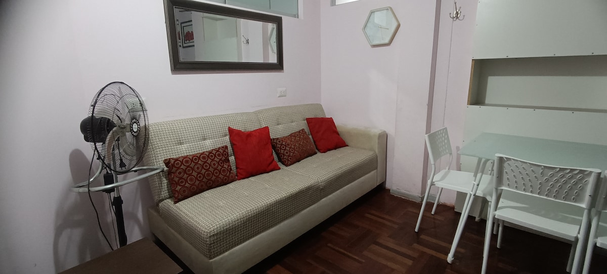 Täielik ja kaasaegne korter ainult kahele külalisele (ilma lasteta). Lisakülalised/külastus POLE LUBATUD. Võid küsida 1 parklat (KOGU peatumise eest) + lisatasu $. 1 suur voodi, kaabeltelevisiooniga NUTITELER, Therma (soe vesi), pesumasin, väike köök laual, mikrolaineahi, külmik. Ainult reisijatele (mitte siin elavatele reisijatele), KELLEL ON VARASEMAD HEAD HINNANGUD TEISTELT AIRBNB MAJUTAJATELT. Miraflorese ja Barranco lähedal (15 min auto ja bussiga). Bussipeatus 1 kvartali kaugusel. Rakenduste taksod saabuvad kohe.