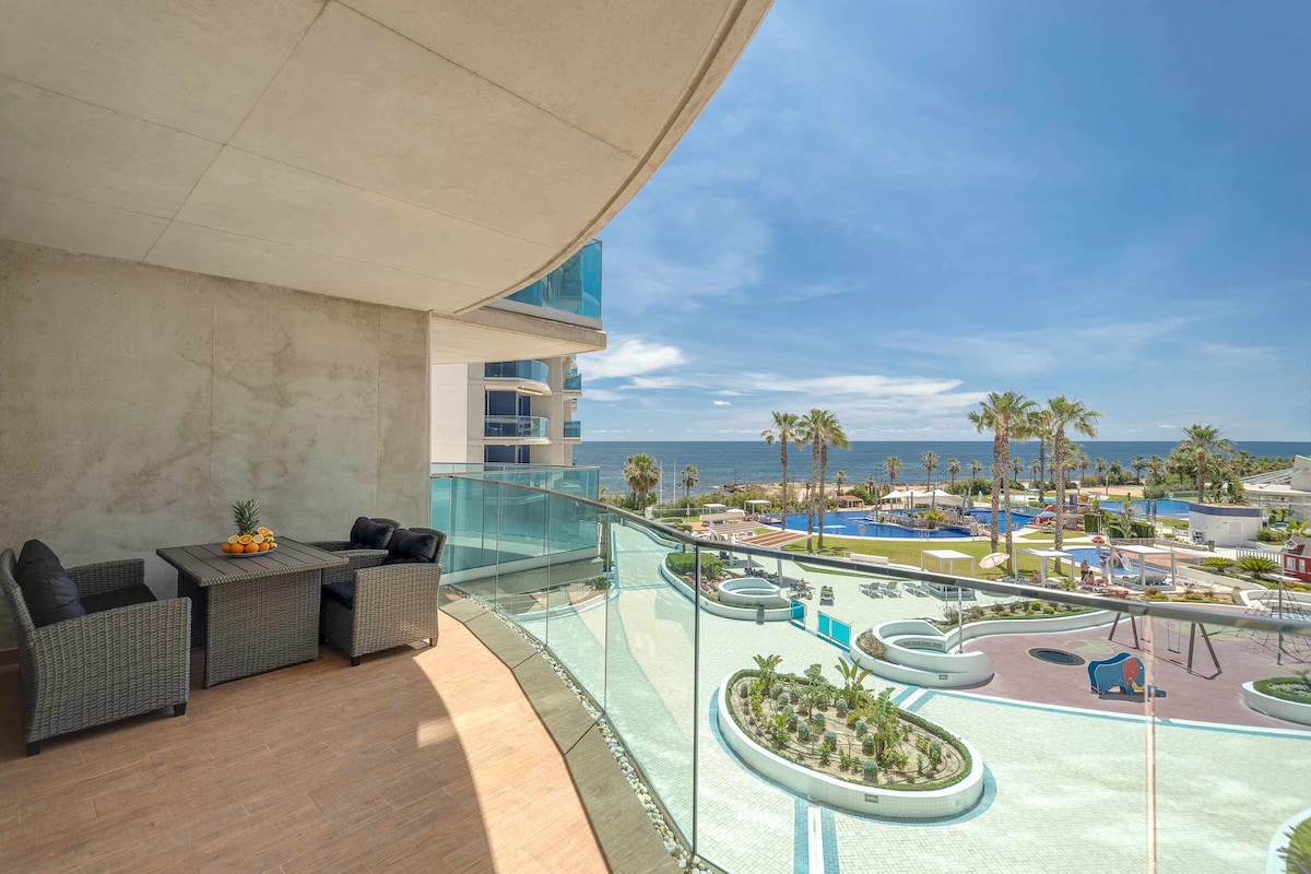 Seafront Residential Resort Apartment - Sea Senses in Punta Prima. Imeilus kahe magamistoaga 2 vanniga korter. Naudi panoraamvaadet merele oma privaatselt terrassilt ja juurdepääsu puhkekeskuse stiilis mugavustele: infinity-basseinid, mullivannid, jõusaal, saun, spordiväljakud ja laste tsoonid. Täielikult varustatud köök, kiire wifi, kliimaseade, pesumasin ja kuivati, privaatne maa-alune garaažiparkimine. Otseühendus mereäärse promenaadiga, mis kulgeb mööda rannajoont, ühendades mitu randa ja restorani.