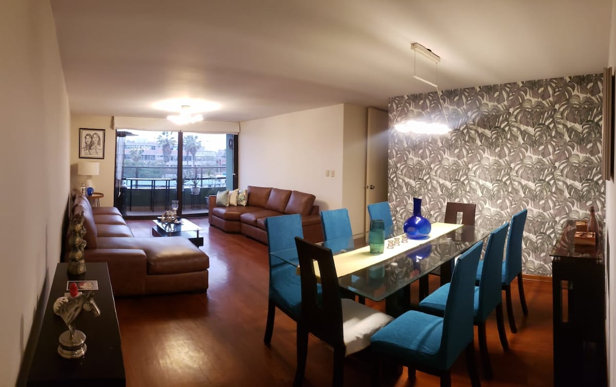 Kaasaegne korter Surco südames Limas Tere tulemast oma majutuskohta väljaspool kodu! See korter sobib ideaalselt reisijatele, kes otsivad mugavust, stiili ja strateegilist asukohta. Korteri omadused: • avarad ja heledad ruumid • Kaks mugavat magamistuba • Täielikult varustatud köök • Kaks kaasaegset vannituba • kiire wifi ja nutiteler Lisamugavused: • pesumasin ja kuivati korteris. • Ööpäevaringne turvalisus ja kontrollitud juurdepääs.