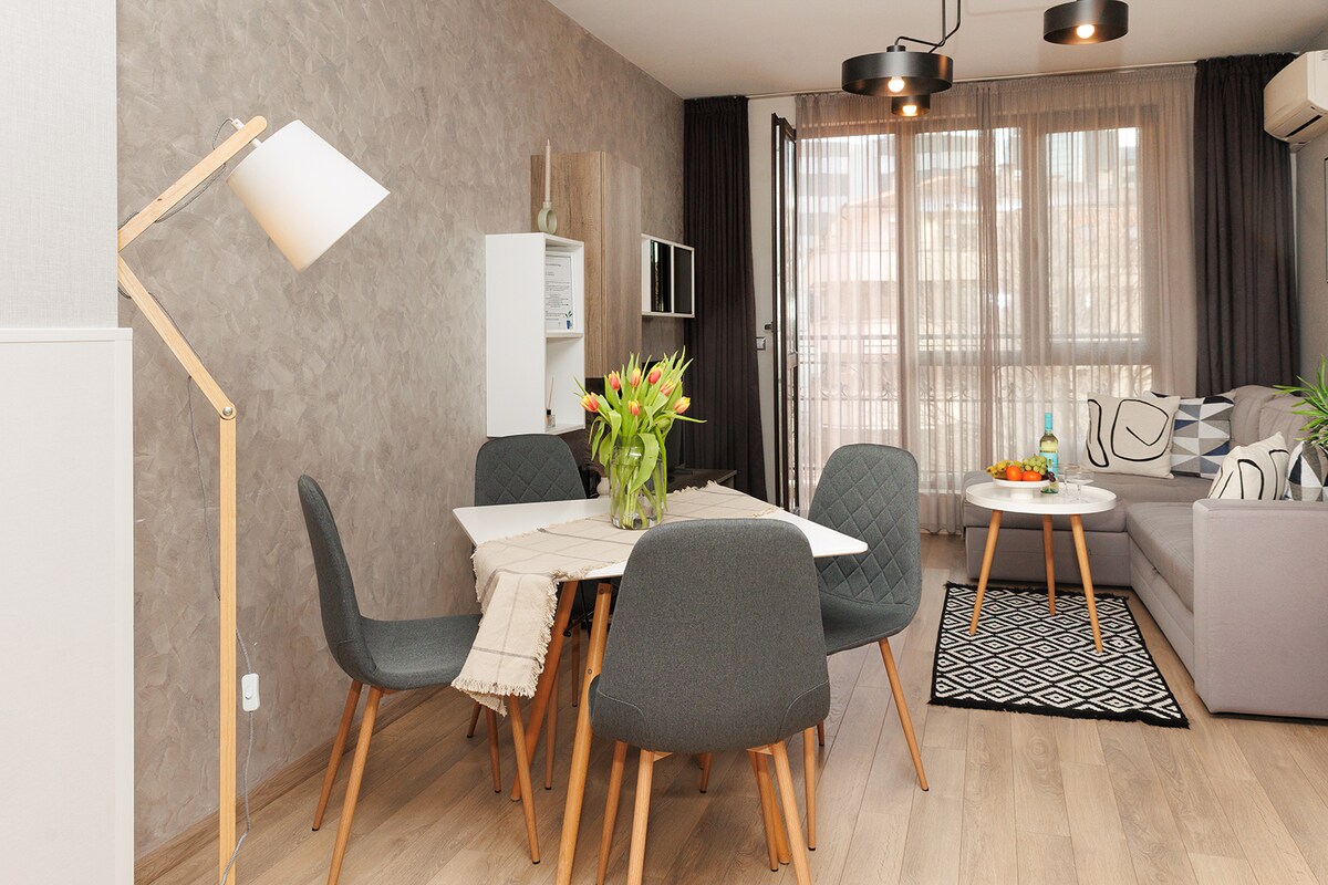 Stiilne ja kaasaegne korter Plovdivi kesklinna lähedal. See asub vaikses piirkonnas jalutuskäigu kaugusel kõigist külastamist väärt kohtadest - Kapana piirkond, kus on kõik kenad restoranid ja baarid, linnaaed ja laulvad purskkaevud. Korter on täielikult varustatud ja sobib isegi pikemateks peatumisteks. Tugev WiFi-ühendus katab kogu majutuskoha.