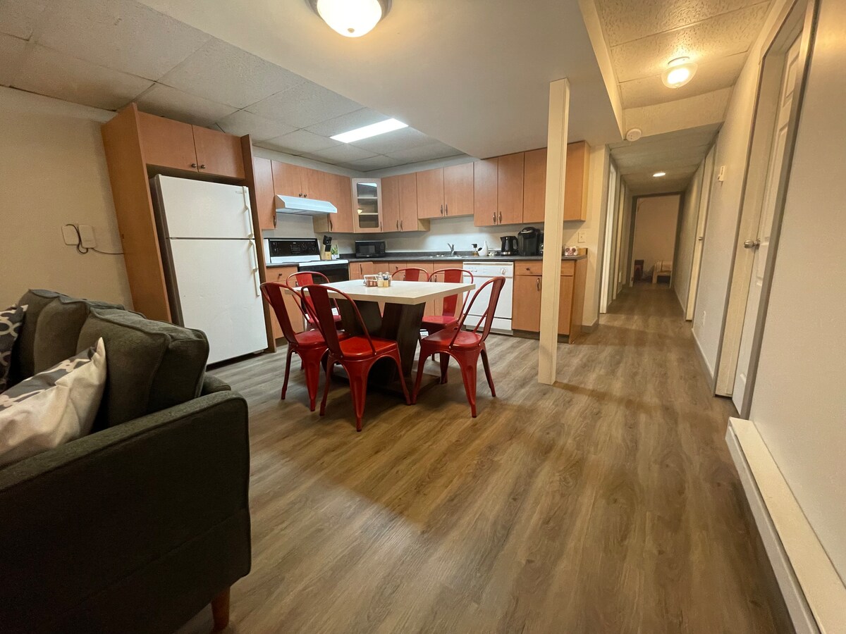 Meie hubane keldrikorter mahutab mugavalt kuus külalist. Selles on magamistuba laia kaheinimesevoodiga, teine magamistuba kahe üheinimesevoodiga ja kaks täiendavat kaheinimesevoodit. Korteris on täielikult varustatud köök ja pesupesemisvõimalused. See asub 1. tänava lähedal ja on vaid lühikese (~5-minutilise) autosõidu kaugusel kesklinnast.