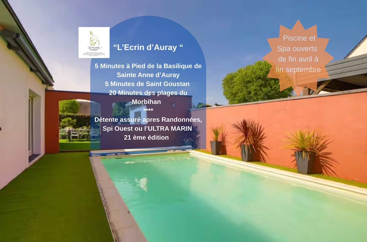 Lõõgastu meie vaikses ja stiilses majutuskohas. Maja asub Sainte-Anne-d'Auray's, basiilika lähedal ja 25 minuti kaugusel lahe või ookeani randadest. Avasta meie rahu pelgupaik, mis on pühendatud heaolule ja lõõgastumisele. 4 magamistuba, 2 vannituba, avatud köök elutoaga, kahekordne elutuba. Rahulik aed soojendusega basseini ja mullivanniga aprilli lõpust septembri lõpuni.
