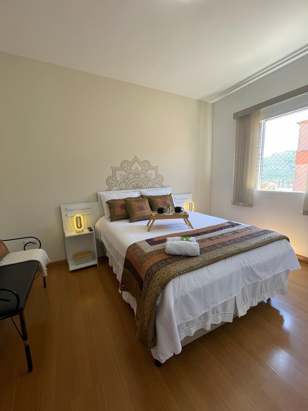 Um aconchegante apartamento que combina praticidade e conforto. O espaço possui cozinha completa, além de um quintal privativo. Possui 1 quarto aconchegante com 1 cama de casal Queen e 2 colchões adicionais para aqueles que buscam comodidade e bem-estar em um ambiente compacto e acolhedor. O imóvel oferece micro-ondas, airfryer, cafeteira, TV Smart e conexão de internet.