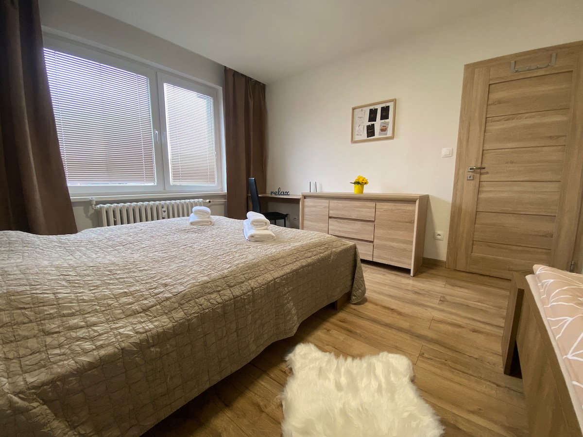 Tere tulemast minu korterisse, mis asub Liptovský Mikuláši kesklinna lähedal. See on kaasaegne ja funktsionaalselt sisustatud ning seal domineerivad Prantsuse aken ja eesaed. Sinu parkimiskoht on kohe kõrvalmajas. Korteris on suur kaheinimesevoodi ja kaks kokkupandavat tooli. Ainulaadne asukoht: 250 m Kaufland 150 m suusabussipidu ja õhtune suusatamine - Jasná 900 m suusabusside suusatamine - Jasná 900 m kesklinn 15 min autoga suusatamine Jasná, suusk Opalisko 15 min autoga Lipt. Mara 15 min autoga Tatralandia