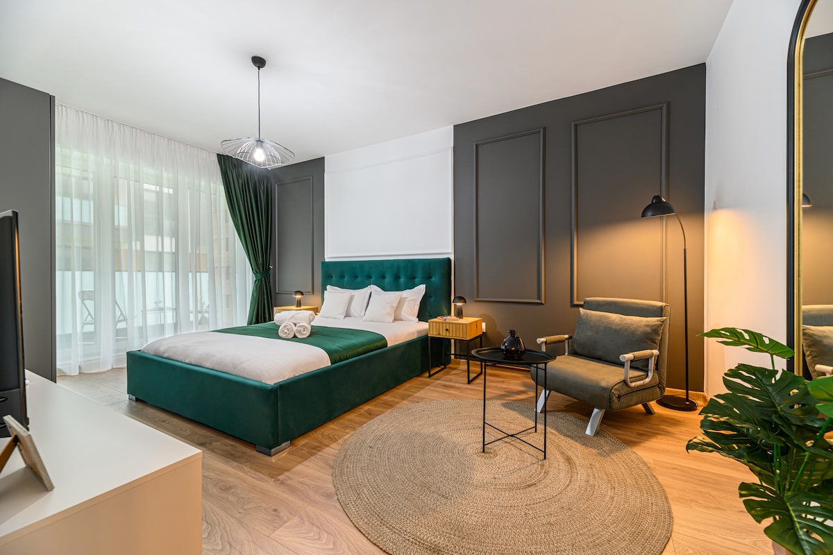 ✨ Mugavus ja viimistlus Brasovi südames ✨ 📍 Coresi Tractoru piirkonnas asuv Bellatrix Suite on elegantne ja kaasaegne korter, mis sobib ideaalselt turistidele ja ärireisijatele, kes otsivad mugavust ja lõõgastust. Kaasaegse disaini ja esmaklassiliste mugavustega korter pakub unustamatut kogemust. 🚗 Tasuta parkimine ja lihtne juurdepääs Korteris on tasuta parkimine ja kiire juurdepääs peamistele turismiobjektidele: Piata Sfatului, Black Church ja Poiana Brasov.