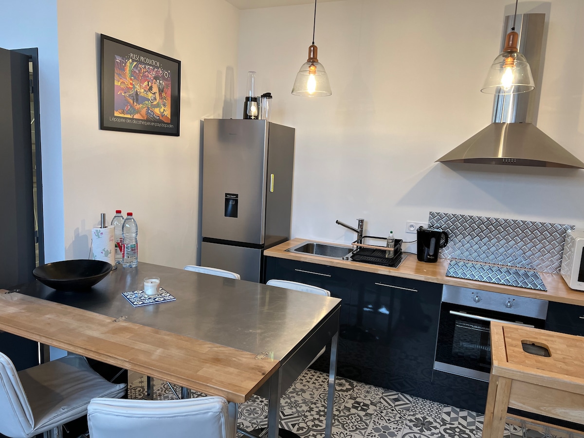 Pont l 'Abbé ajaloolise keskuse (2 min jalutuskäigu kaugusel) linna sissepääsuni ja 10 minuti kaugusel randadest autoga. Suur majutus, mis mahutab 4 inimest. Esimesel korrusel on suur elutoa kvaliteetne kabriolettdiivan, teler, laud, laud, wifi , wc, wc, veranda (suitsetajale või muule), varustatud köök (kohv, tee, suhkur...), söögituba, suur riietusruum, suur magamistoa voodikomplekti suurus , kaheastmeline vannituba koos spaa ja aurutoaga, väike terrass ja grill . Tasuta parkimine.