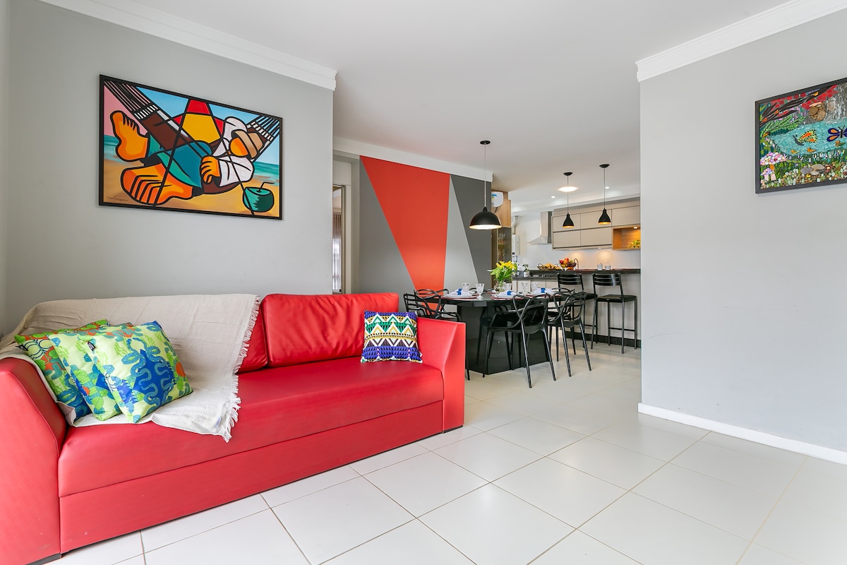 Kena korter, sisustatud, parimas korteris, kus on riigi lõunaosa bassein - Marine Home Resort 1 magamistuba sviidiga 1 kaheinimesevoodi ja 1 üheinimesevoodi, elutuba 2 tuba, teeninduspiirkond, rõdu grilliga. Elutoas on 1 ülimugav diivanvoodi ja täispuhutav madrats KONDITSIONEERIGA TOAD WiFi, NUTITELER NETFLIXIGA kahes TELERIS (IPTV) Kaetud garaaž ühele autole Korter 100 m Cachoeira rannast. Sellel on supermarket esimesel korrusel
