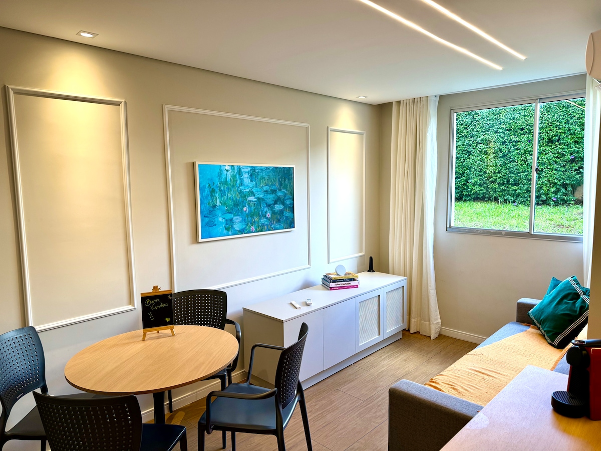 ✨Otsid uut ja hea asukohaga majutuskohta Ponta Grossa kesklinnas? Meie korter sobib sulle ideaalselt! 📍Vaid 3 kvartali kaugusel UEPG-st, 7 kvartali kaugusel Santa Casa 'st ja 1 kvartali kaugusel Avenida Bonifácio Vilelast, mida tuntakse paremini nime all „Avenida München“, ühendab endas praktilisuse ja mugavuse. Boho stiilses stiilis kaunistatud, mahutab kuni 3 inimest (kaheinimesevoodi + diivanvoodi). ⚠️ NB! Hoone on uus ja seda kohandatakse endiselt vähe, kuid see on juba valmis tagama külalislahke peatumise. Tere!