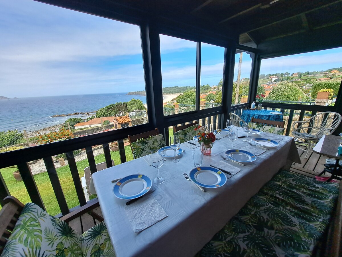 Te imaginas desayunando frente al mar? Relajarte con el océano a tus pies? Bajar a la playa en cualquier momento o disfrutar de las vistas desde el porche acristalado o el jardín? Pocos lugares tienen las increíbles vistas y puestas de sol de este lugar, a tan solo 100m de la playa bandera azul Pragueira/Major. Hasta puedes ver delfines. Dispone de cocina, barbacoa y comedor acristalado exterior para disfrutar todo el año de este privilegio. Excelente ubicación para conocer las Rias Baixas.