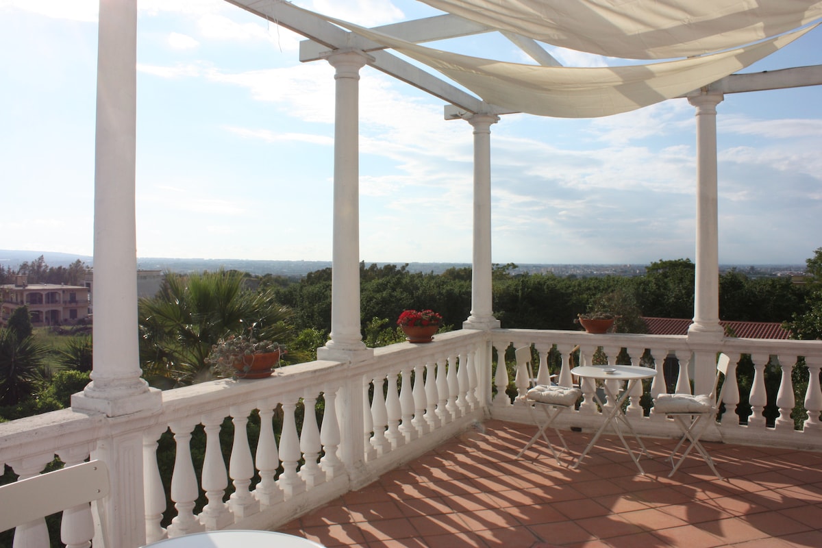 La camera, decorata con presepe napoletano artigianale, dispone di bagno in camera e balcone panoramico privato, con possibilità di letto matrimoniale o singolo.