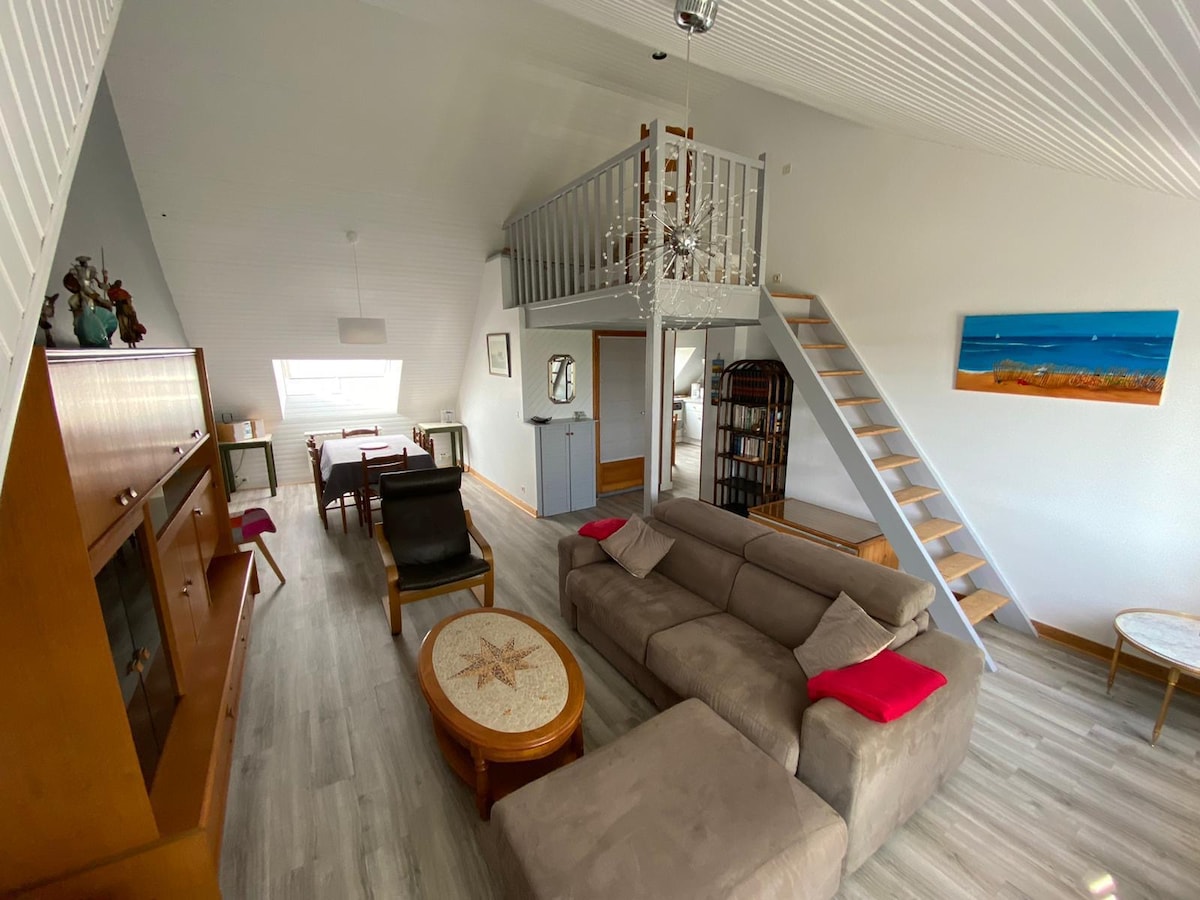 Ideaalses asukohas Haligueni sadama ja 50 m kaugusel rannast asuv stuudio mahutab mugavalt 3 inimest koos lapsega. Marli mööbel, puhas sisekujundus, mugavad mugavused ja madratsid... Siin on sõbralik varjupaik, kus saab aastaringselt jodeeritud õhku nautida. Tasuta parkimiskohad ümbritsevatel tänavatel, jalgrattagaraaž, restoranid, kohvik ja purjetamiskool otse kõrvalmajas. Esimene korrus ilma liftita.