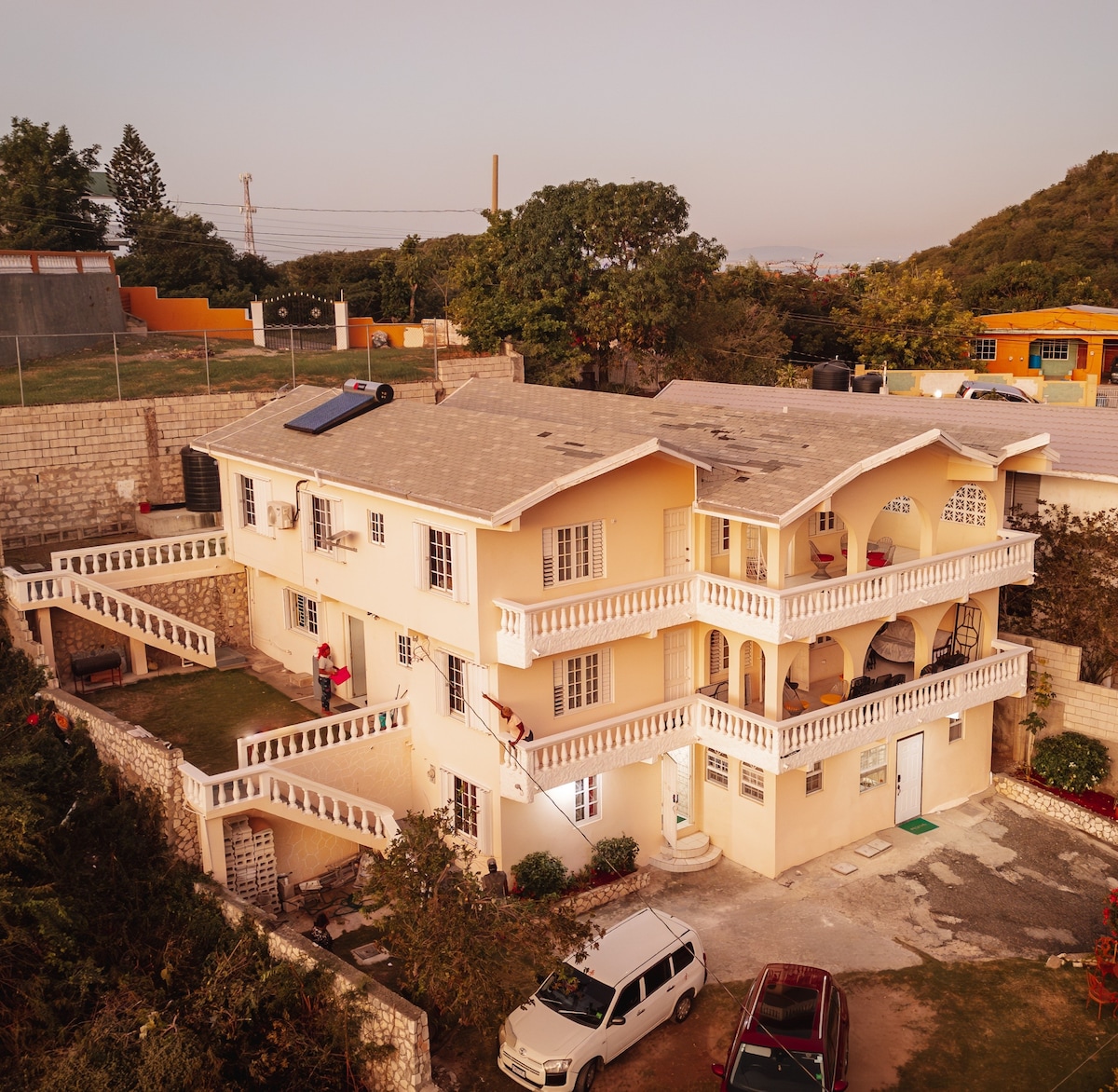 Meie maja asub meie kookoseistanduse keskel ja sealt avaneb fantastiline vaade (25 jalutuskäigu kaugusel) linnale Port Antoniole, sadamale, Sinistele mägedele ja Kariibi merele. Meil on kaks korterit, mida sa piltidel näed, on katusekorter. Pakume ka transporditeenust linna, ekskursioone Jamaica vaatamisväärsuste juurde, mägirattadesse ja standuppaddelisse ning snorgeldamiskomplektidesse. Soovi korral pakume ka hommikusööki 15,50 USA dollarit inimese kohta.