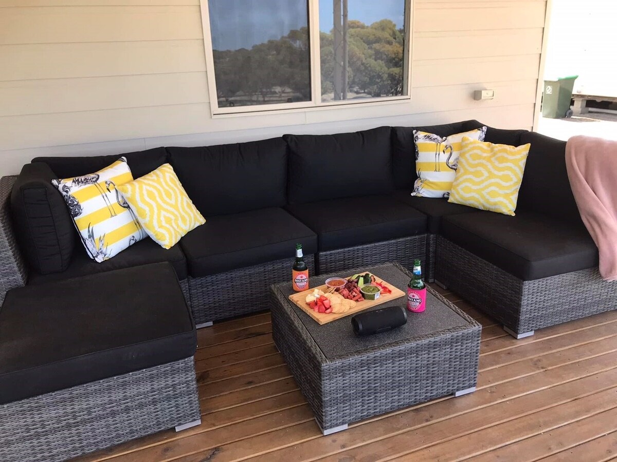 Sunset Lodge – Your Home Away from Home Tucked away in a quiet street of Hardwicke Bay is this sensational beachside cabin. Enter the side gate and you’ll be just a short walk to the shores. The space comes fully furnished and so well equipped, all you really need are your clothes! Have a boat? Bring it along! There’s plenty of secure parking on site. With the beach so close, water activities like fishing, squiding, kayaking, snorkelling and swimming are just right on your doorstep. Explore the rockpools upon sunrise and watch the tides come in at sunset while you sip on a wine or two with uninterrupted views. Enjoy dinners cooked over the barbeque with the complimentary hot plate available on deck or head to one of the many local eateries like Caffé Primo in nearby Minlaton or the Tavern on Turton in the popular town of Point Turton, both approximately 15 minutes drive away. Featuring 3 spacious bedrooms consisting of: – · a queen bed with ocean views in room 1 · a queen bed with baby cot in room 2 · and 2 sets of single bunks ideal for children & teens in room 3 All rooms have the added comfort of ceiling fans, while room 3 has also been thoughtfully equipped with books, toys and lamp lights fitted above the upper bunks for your kids to snuggle up with reading for some down time. Each room comes with quilts and covers, as well as pillows. You only need to bring your own sheets and pillow cases. The house also has a washing machine and dishwasher for your convenience. And besides towels, everything else is covered! No matter what time of the year you visit the reverse split system A/C unit in the main lounge will keep you cool and cosy on those hot summer days and cold wintery nights. Sit back and relax with a movie on the DVD player with lots of family friendly options to choose from or pop on some tunes using the mini stereo. And if you’d prefer some screen free fun, help yourself to the collection of board games. For a nice, stress-free getaway with your family or friends, discover why this hidden gem is the perfect spot and place you call a home away from home. Want to bring your furry friend? We can do so by prior arrangement. Book now to secure your dates and enquire about our special rates! We look forward to accommodating your next trip. Heidi