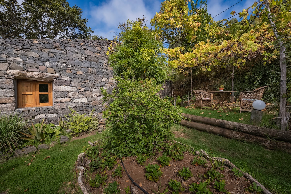 Detached cottage at Casas da Levada agritourism, with breakfast provided on a self-catering basis. From an old wine cellar, where the farm tools were kept, "Casa da Cascata" was rebuilt, keeping its original stone layout, balancing the rustic and modern line. Facing the pool, it offers an exclusive view of the Atlantic Ocean and a unique sunset from the western most tip of Madeira Island.