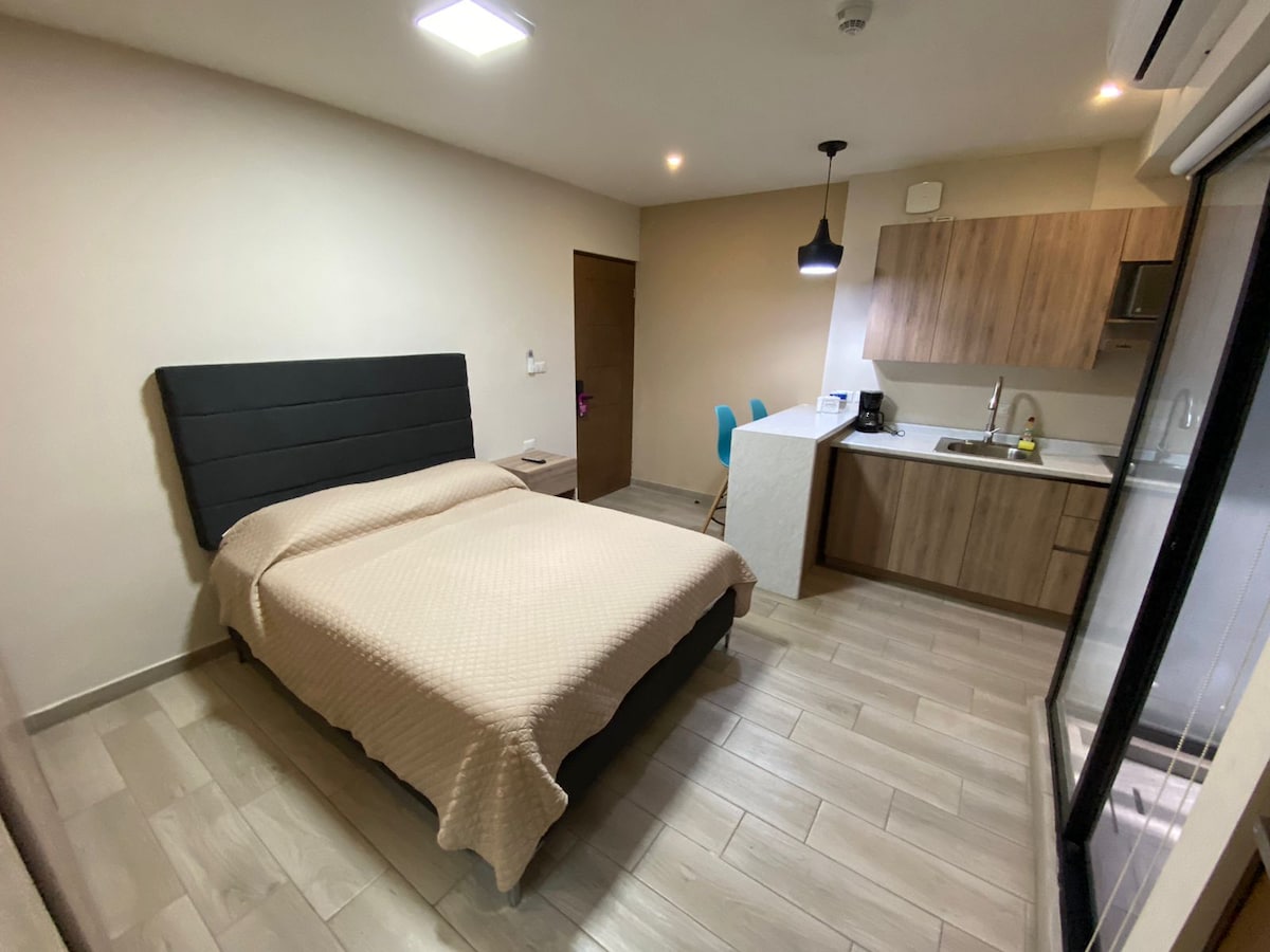 Iseseisev loft suurepärases asukohas. Ideaalne turistidele ja äriinimestele. 5 minuti kaugusel San Nicolas y UANLi kesklinnast, 10 minuti kaugusel Monterrey kesklinnast. Mõne kvartali kaugusel metroost, kliinik 6, haigla, kaubanduskeskused, Soriana Sendero Escobedo, Plaza Fiesta Anáhuac, Soriana Hiper Universidad, Plaza Andenes, Club del Lago, Stiva Industrial Park, mis asub Avenida Universidadi ja Manuel L. Barragáni vahel.