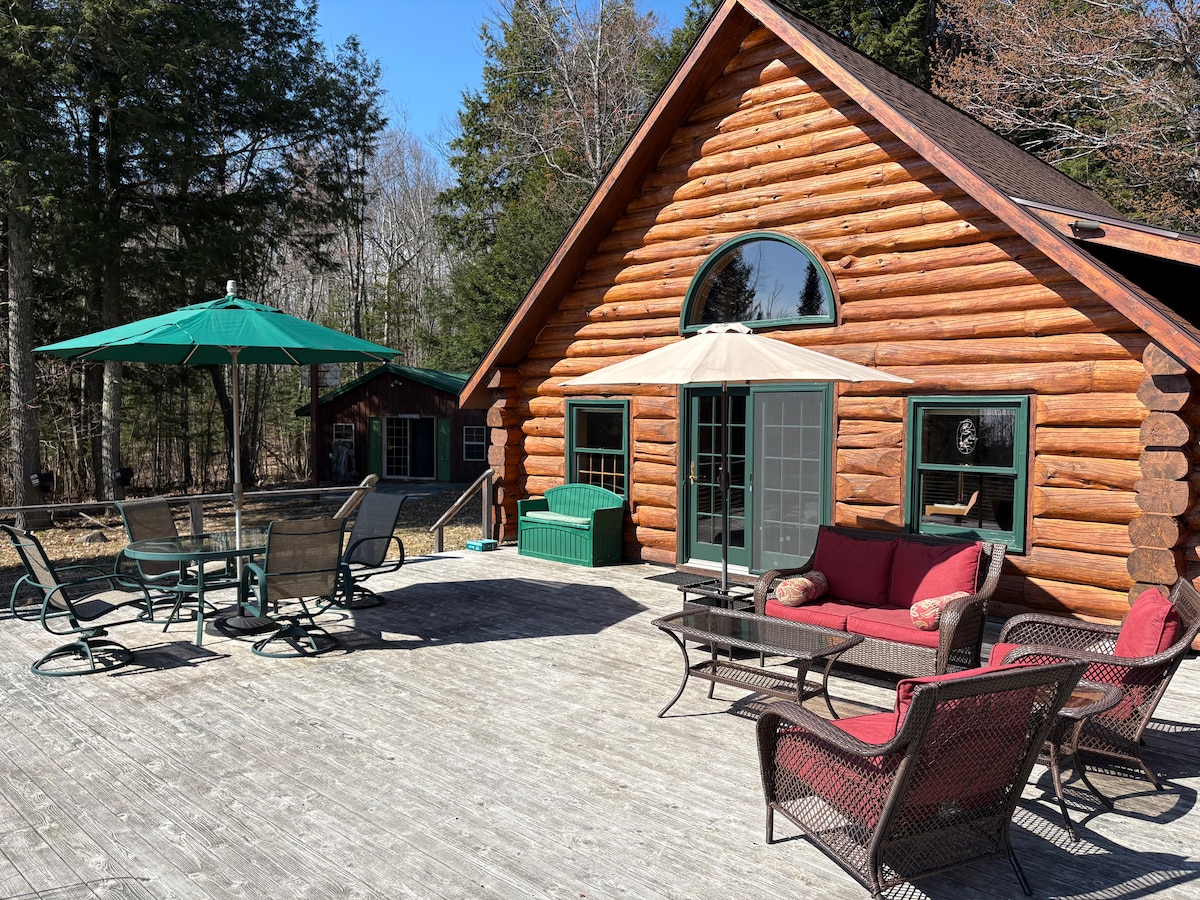 Take it easy at this unique and tranquil getaway on the Silver River. A cozy log cabin beautifully hand crafted by the owner himself. There is one queen size bed along with a futon that folds out into a twin bed and a convertible couch which also folds down into a twin bed. Enjoy snowmobiling, snowshoeing, skiing, 4 wheeling, hiking, kayaking, boating, fishing, hunting and much more!