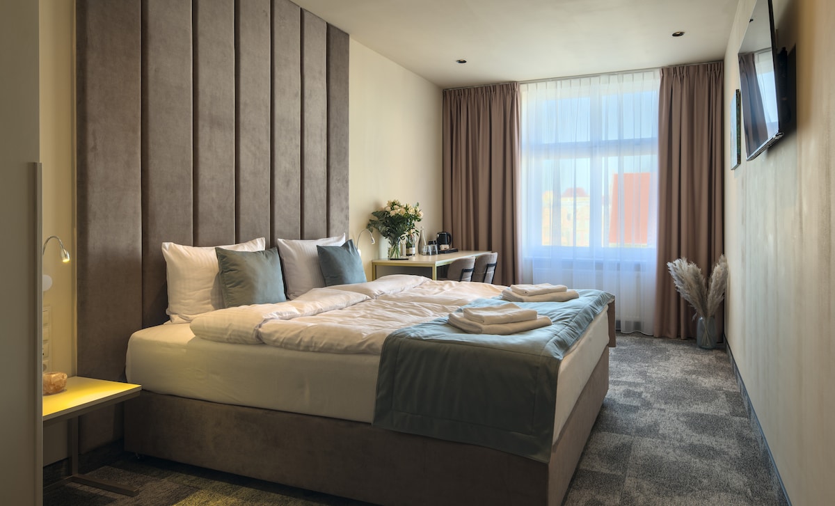 Silver Room to po prostu solidny, hotelowy pokój. Jest czysto, wygodnie i funkcjonalnie, a standard spokojnie spełnia oczekiwania na krótki pobyt. Dużym plusem jest dostęp do śniadania i basenu, co przy tej cenie naprawdę się opłaca. To dobra opcja dla osób, które szukają noclegu w Poznaniu w rozsądnym budżecie, cenią porządek, spokój i dobrą relację jakości do ceny, bez zbędnych obietnic.