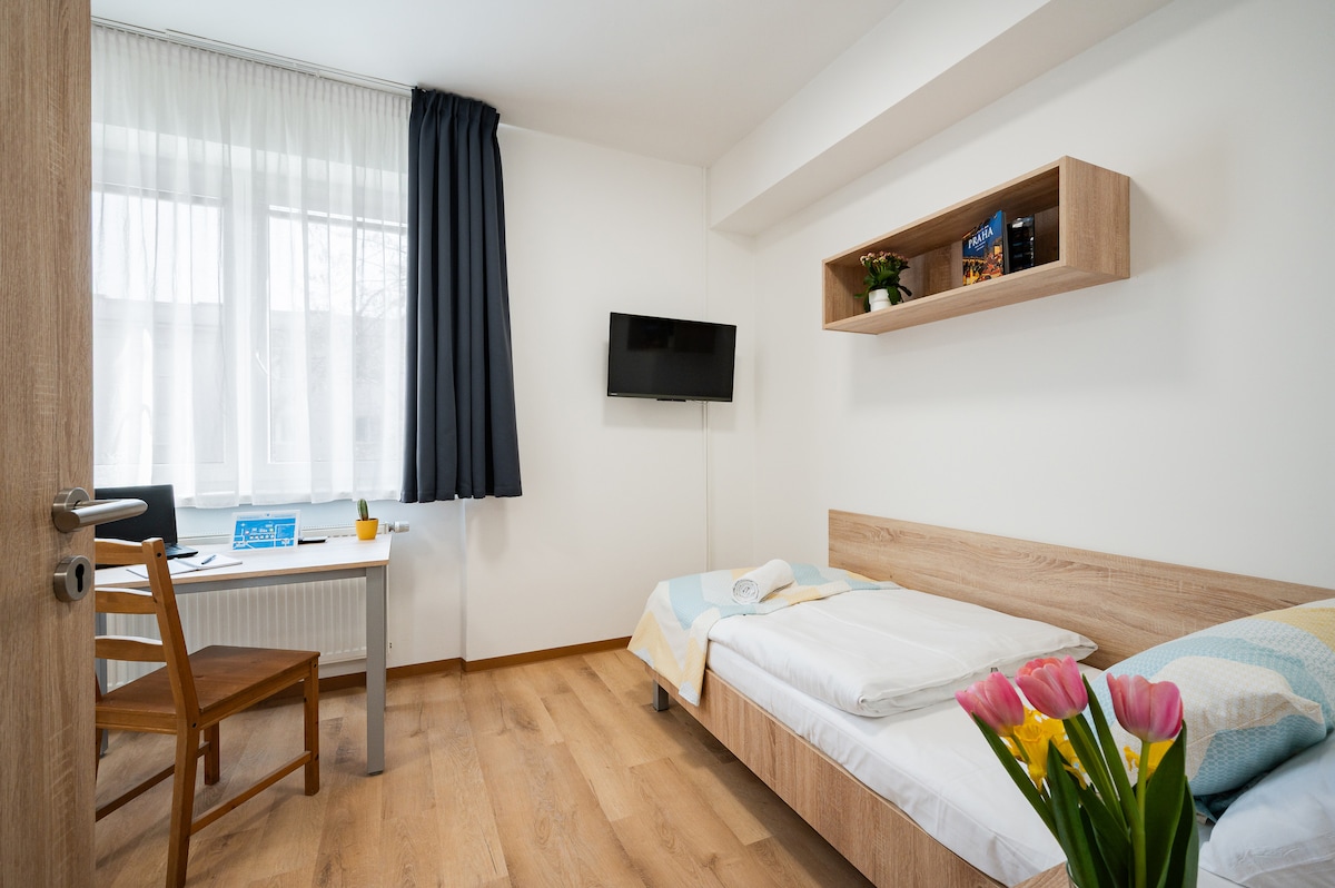 Uus renoveeritud privaatne korter ainult sulle (ei jaga seda kellegi teisega🙂). Korteris on eraldi magamistuba, elutuba köögi, vannitoa ja WC-ga, kokku 42 m2. Korter asub 20 minuti kaugusel kesklinnast. Mugav ühistransport: tramm, buss ja metroo lennujaama. Läheduses on palju baare, restorane ja poode. Roheline ja turvaline asukoht Vinohrady, Zizkov. Enesekontroll. 4. korrusel lifti pole.