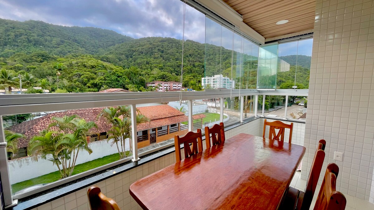 Väga mugav korter 134 m ² väga hästi ventileeritud, gurmeegrilliga, täisköök, oma fiiberoptiline internet 100 mb wifiga. Korter, kus on ööpäevaringne valve, bassein, puhkeala suure rohelise alaga, et hinnata loodust ja kaetud garaaž. Täpselt 130 meetri kaugusel Ubatuba (Praia Grande) kõige sagedasema ranna liivast. Väga hea asukoht: turgude, pagariäri,restoranide ja apteekide lähedal. Registreeru uksehoidjasse hõlpsasti.