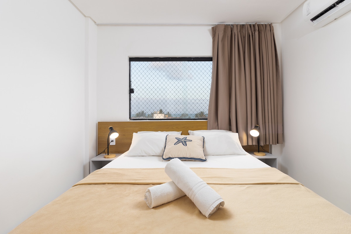 Flat de uma família despojada e descontraída com decoração simples, mobília funcional e aconchegante. Um espaço delicioso para estar na praia e em um flat confortável! Com limpeza diária inclusa por parte do flat, uso da piscina, mesas, ambrelone e espreguiçadeira. Desejamos para vocês uma ótima estadia.