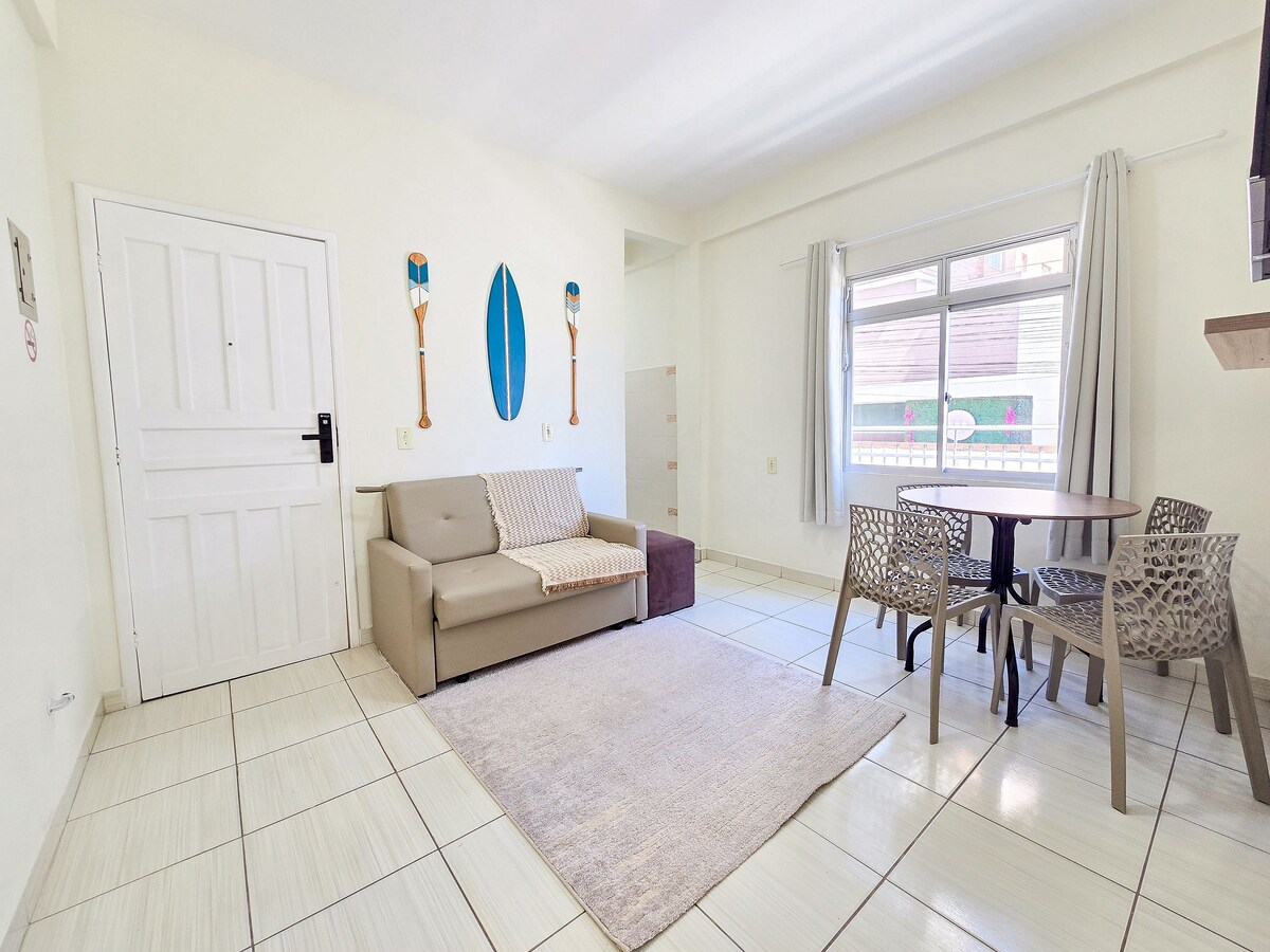 Apartamento, luminoso, arejado, para ir a pé á praia da lagoinha, sepultura e retiro dos padres. Vai atê outras praias á contrafluxo do transito. Agua transparente com e sem ondas, bares, mergulho, peixinhos e tartarugas . A 600 metros começa o centro de bombinhas. O Nosso diferencial começa no horario de checkin/checkout, pensađo para facilitar o transito de quem vêm de longe. E para virar local, recebe um guia que te leva num clicķ até tudo o que precisa conhecer aqui e nas cidades vizinhas.
