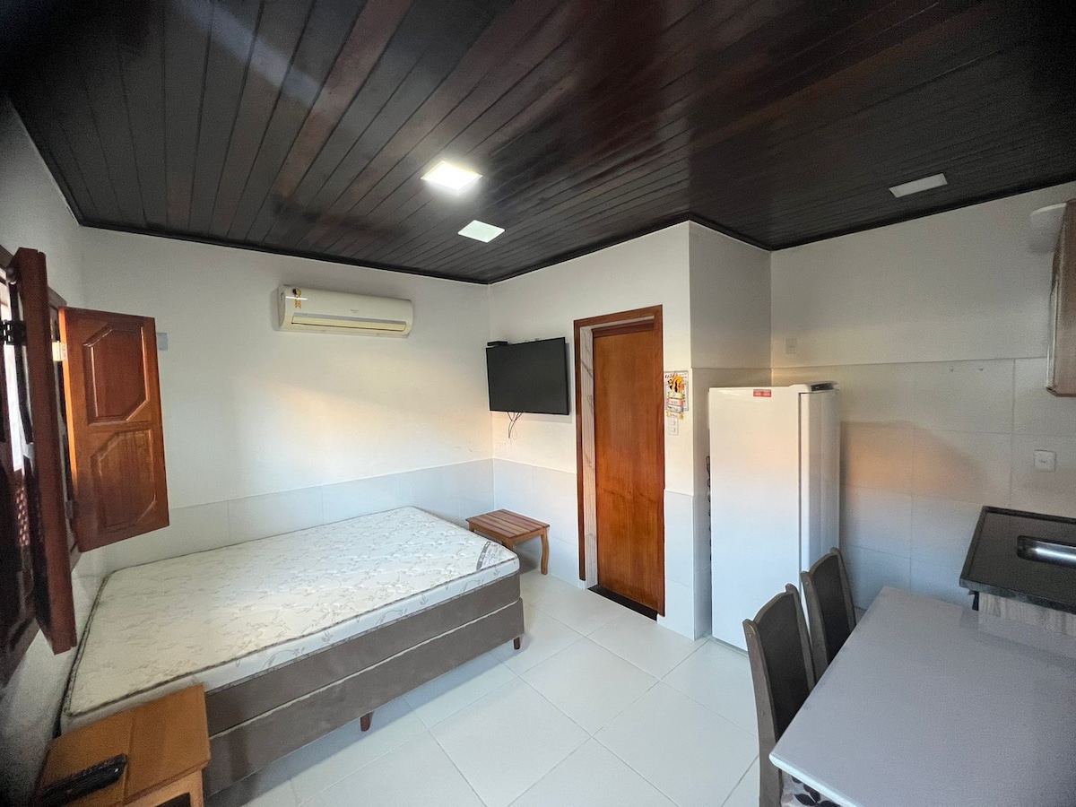 A suíte possui cama de casal, com até duas camas auxiliares de solteiro; banheiro privativo, guarda-roupas planejado, tv 32", ar condicionado split, frigobar, secador de cabelos. . Atenção! Roupas de cama e banho não estão inclusos nesse valor da hospedagem! Nem itens de higiene pessoal, nem café da manhã, nem chá da tarde, nem limpeza de quarto diária . Também não alugamos a rouparia. . Esses são serviços exclusicos para hóspedes da Pousada Rarogui’s alto padrão!