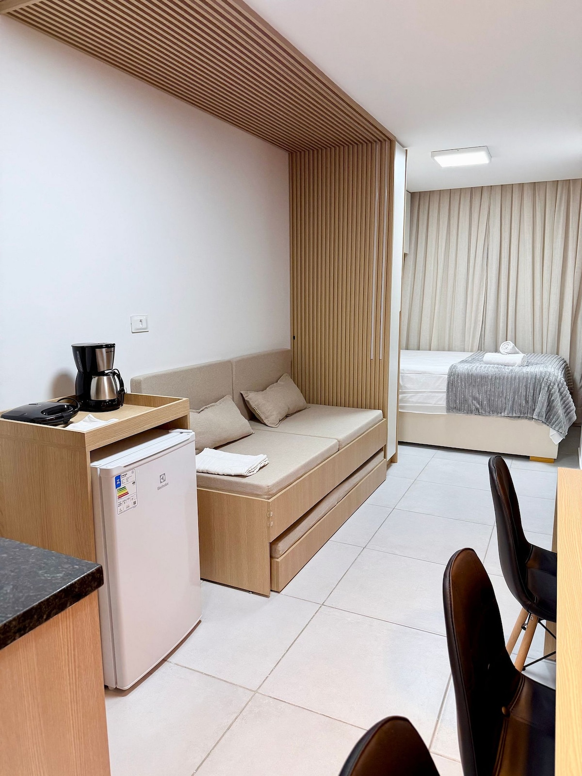 Stuudio Marulhos Suites Resortis. Lai kaheinimesevoodi, kaheinimesevoodi, lisamadrats, kliimaseade, hea internet ja nutikas teler. Köögis on külmik, Gelágua, kohvimasin, võileivamasin ja muud köögiriistad. Mugav korter basseinide poole. Hotell on esmaklassiline, seal on mitu basseini, saun, jõusaal, jalgpalli ja tenniseväljakud, mänguväljak ja puhkeala lastele iga päev. Mul on juba paar aastat üüritud seda ja teisi kortereid kõrgel seinal, nii et usalda mind!