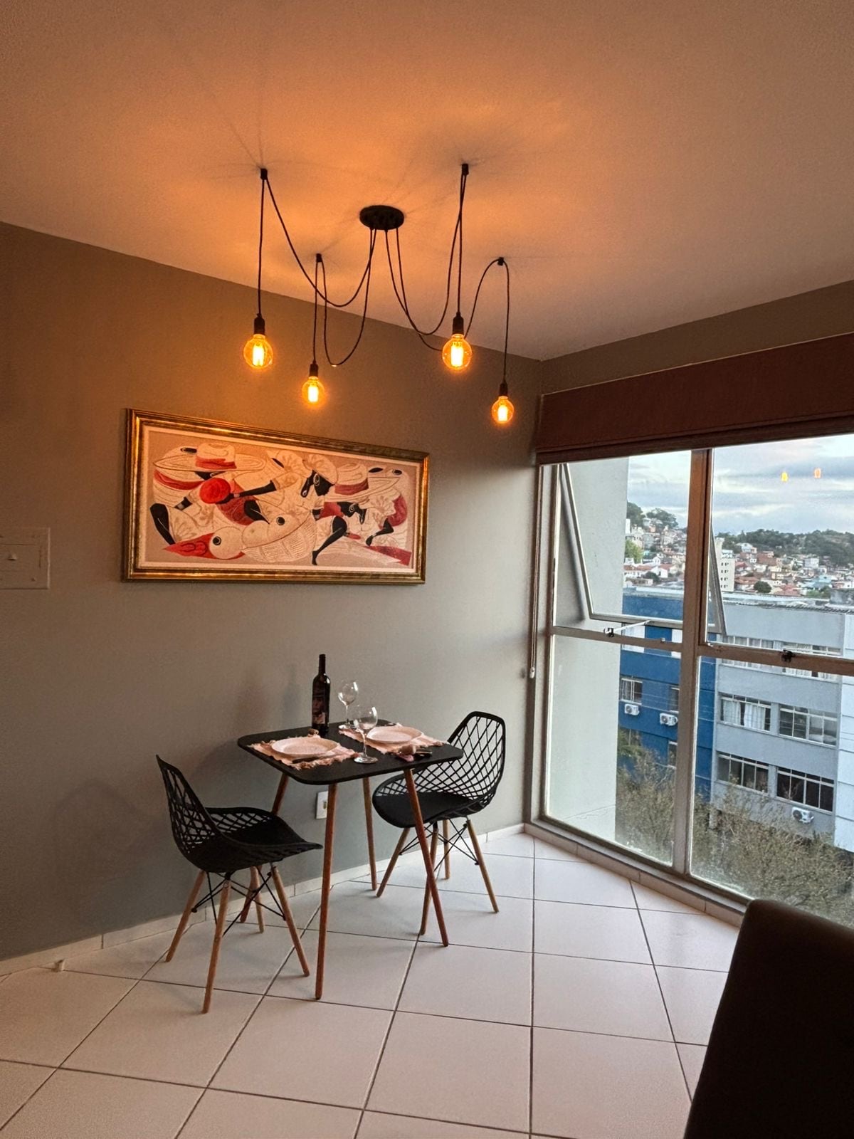 Looking for a cozy checkpoint in the heart of the city? You'll feel at home in this well-planned loft. Located in downtown Florianopolis, it's perfect for someone looking to explore the island or attend to an event nearby. Includes: - Queen bed - Complete gourmet kitchen - Washer and drier - Big table for meals and Home Office - 360 Rotational TV so you can watch from anywhere in the loft - Clean and modern bathroom - Wi-fi - Complete air conditioning