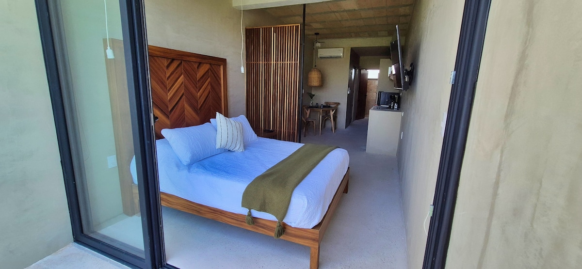Estancia con cama Queen, jacuzzi y Cocina