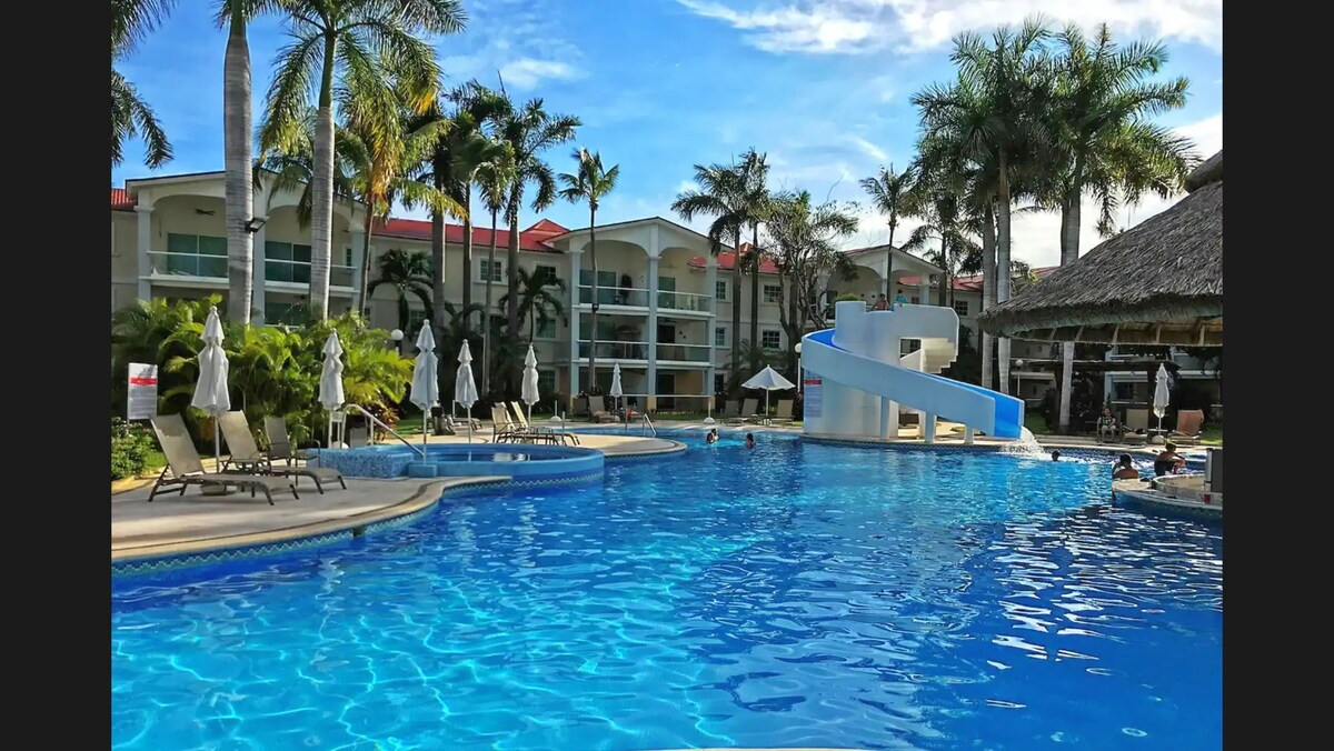 ☀️Toma un merecido descanso en un ambiente de relajación y conexión con la naturaleza, este departamento estilo Californiano ofrece un ambiente fresco y moderno☀️ 6 Huespedes maximo Rec Principal: King Size con balcón y Vista a la piscina 2da Rec: 2 Matrimoniales 3ra Rec: Cama individual (Cuarto de Servicio con venitlador) Disfruta albercas, jacuzzis, juegos, snack&bar, gym, tenis, padel y más. ⭐Opcional⭐️ Acceso al Hotel Mayan Palace con playa, río lento, albercas, camastros y snack bar