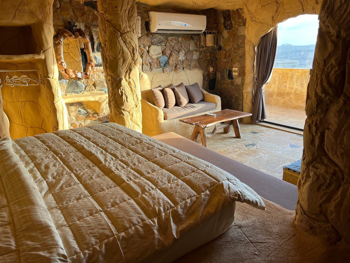 Esimene stuudio Egiptuses, mis ehitati püramiididega identsete kividena koopana. 70 ruutmeetrit puhast ajaloolist luksust, kust avaneb suurepärane vaade püramiididele. Varustatud kõigega, mida võid või vajad peatumise ajal. Meeldejääv elamus, millest sa ei saa kunagi ilma jääda. Netflix on saadaval