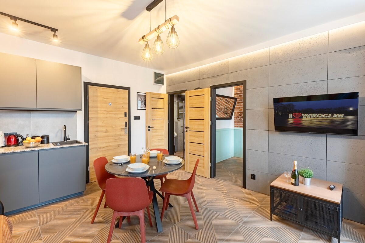 Ilus, luksuslik, loft-stiilis korter hämmastav just renoveeritud hoone alates 20. sajandi algusest, avatud elutuba, kus on suur köök, kahekordne magamistuba 2 külalist ja diivan elutoas veel 2, kaasaegne uus vannituba ja rõdu. Kerge ja õhuline, vaikne asukoht, kuigi vaid 9-minutilise jalutuskäigu kaugusel pearaudteejaamast ja 18-minutilise jalutuskäigu kaugusel vanalinnast, rahu ja vaikus. Lähedal asuvad poed ja baarid. Netflix. Iseseisev sisseregistreerimine kuni 21:00! Ideaalne asukoht Wroclawi jõuluturu vaatamiseks! :)
