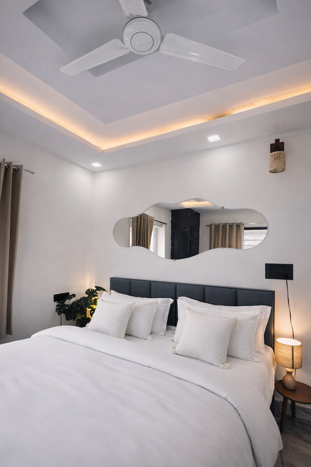 Step into a sanctuary where modern comfort meets the serene spirit of the Ganga. Nestled just steps away from the river, this stylish and calming retreat is designed for travelers who seek peace, rejuvenation, and a touch of luxury. Wake up to soft sunlight filtering through large windows, enjoy your morning chai on a private balcony with fresh river breezes, and unwind in thoughtfully curated interiors that bring together elegance, comfort, and nature.